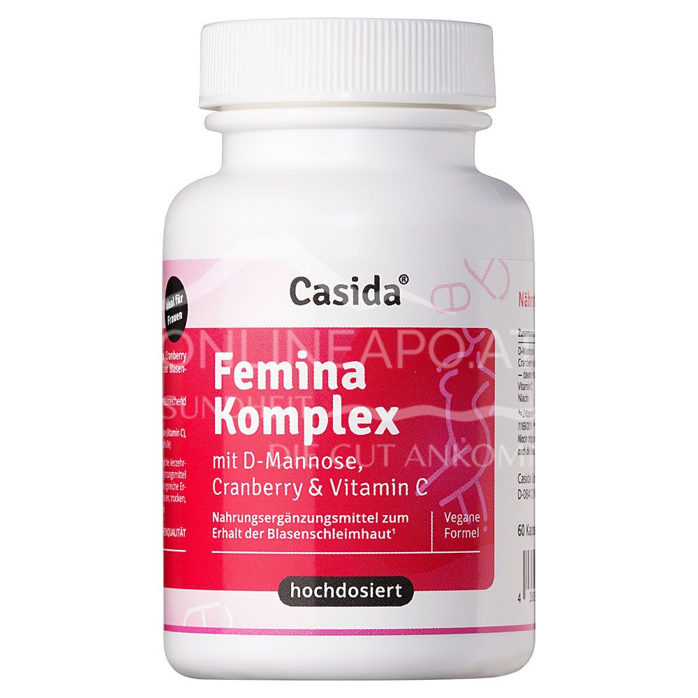 Casida Femina Complex with D-Mannose, Cranberry & Vitamin C Capsules are a dietary supplement with a unique formula consisting of a triple natural formula of D-Mannose (high-dose), cranberry extract and vitamin C.