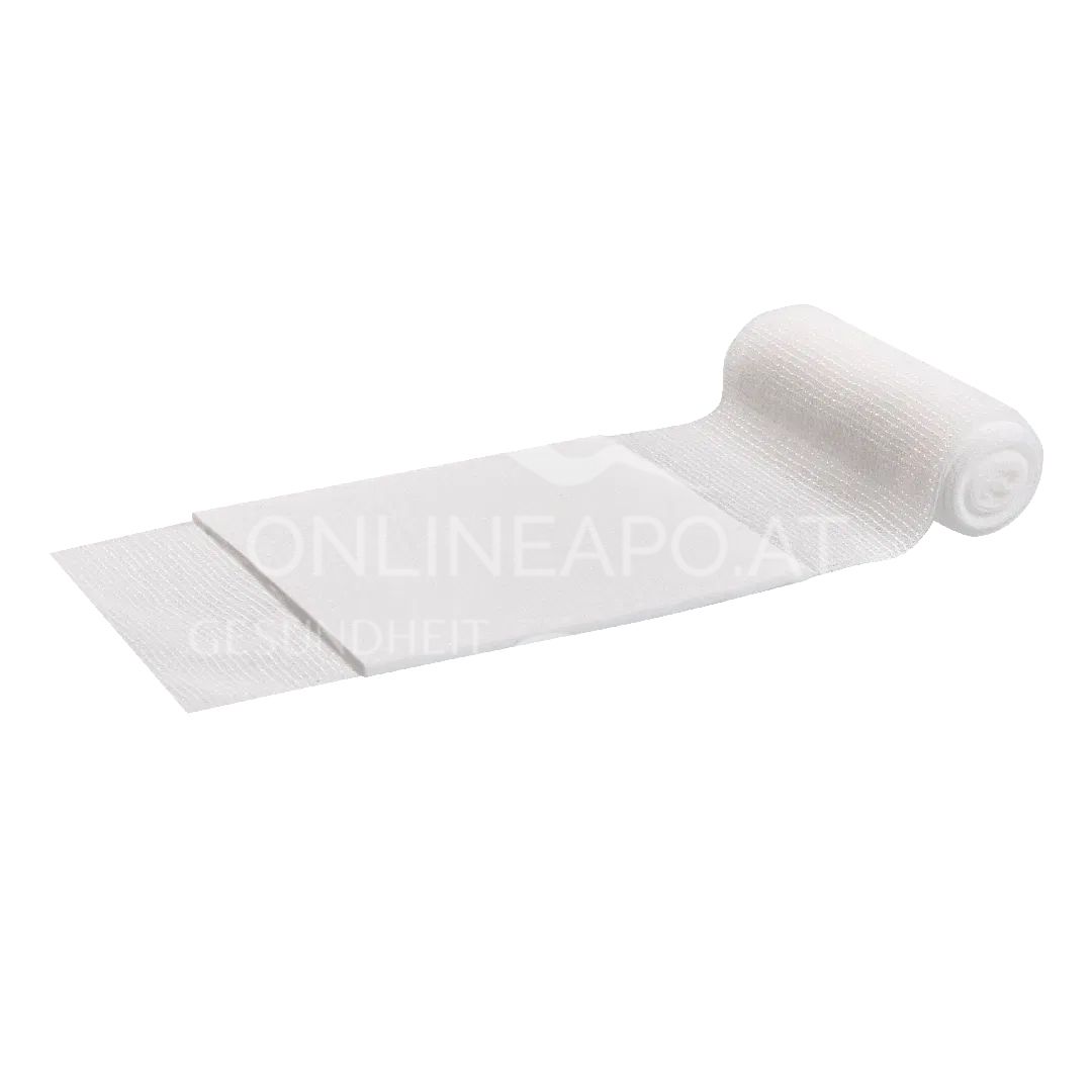 DermaCare® Kompresse, aufgesiegelt auf eine elastische WS-Fixierbinde, stranguliert nicht. SÖHNGEN® No-Touch-Wicklung, einzeln steril in Peelpackung. DIN 13151.