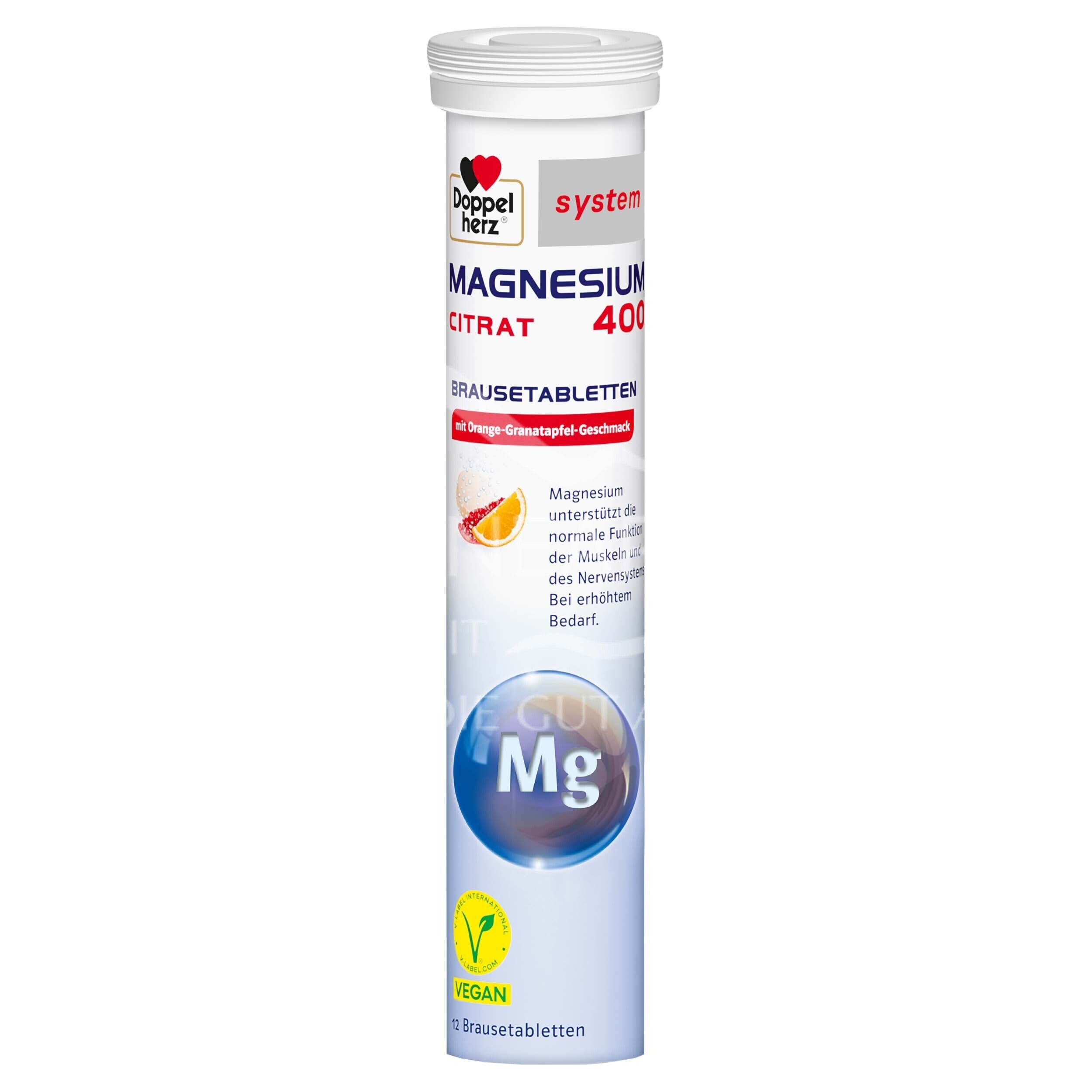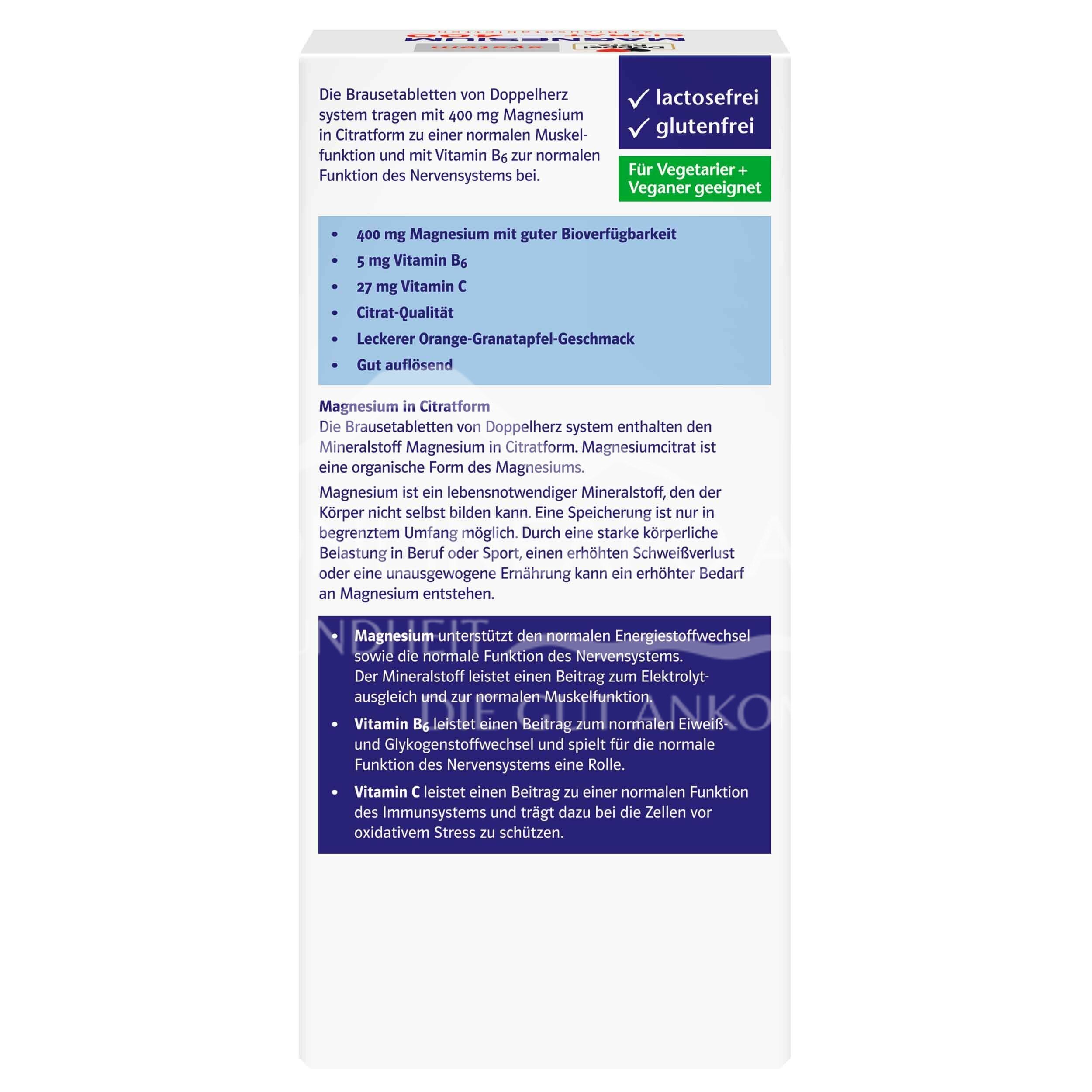 Die Doppelherz system Magnesium 400 Citrat Brausetabletten sind ein Nahrungsergänzungsmittel mit Magnesium, Vitamin B6 und Vitamin C und fruchtig-frischem Orange-Granatapfel-Geschmack.