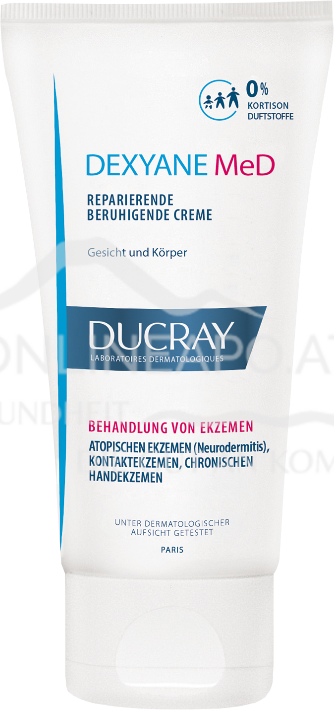 The medical product DEXYANE MeD was developed by Laboratoires DUCRAY for the effective treatment of mild to moderate eczema (neurodermatitis, contact eczema and chronic hand eczema). Completely cortisone-free, it relieves itching, intensively moisturises and repairs damaged skin. It also creates a protective film on your skin, which reduces the frequency of recurrences. As a medical product, DEXYANE MeD can even be applied directly to open, painful areas of skin in the acute phase. Very good international clinical study results and a demonstrably very high tolerability make DEXYANE MeD the safe choice for the treatment of eczema.
