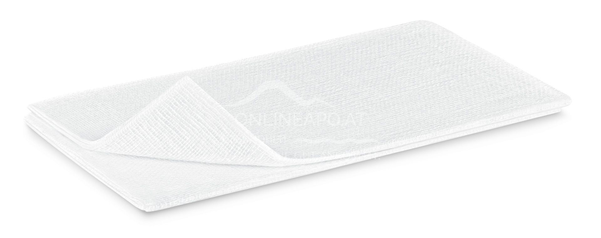 Made of gauze EN 14079, 17-thread, with folded cut edges (= ES), can also be used folded out several times in larger formats, without disturbing edge threads, good absorbency, air-permeable, soft and supple