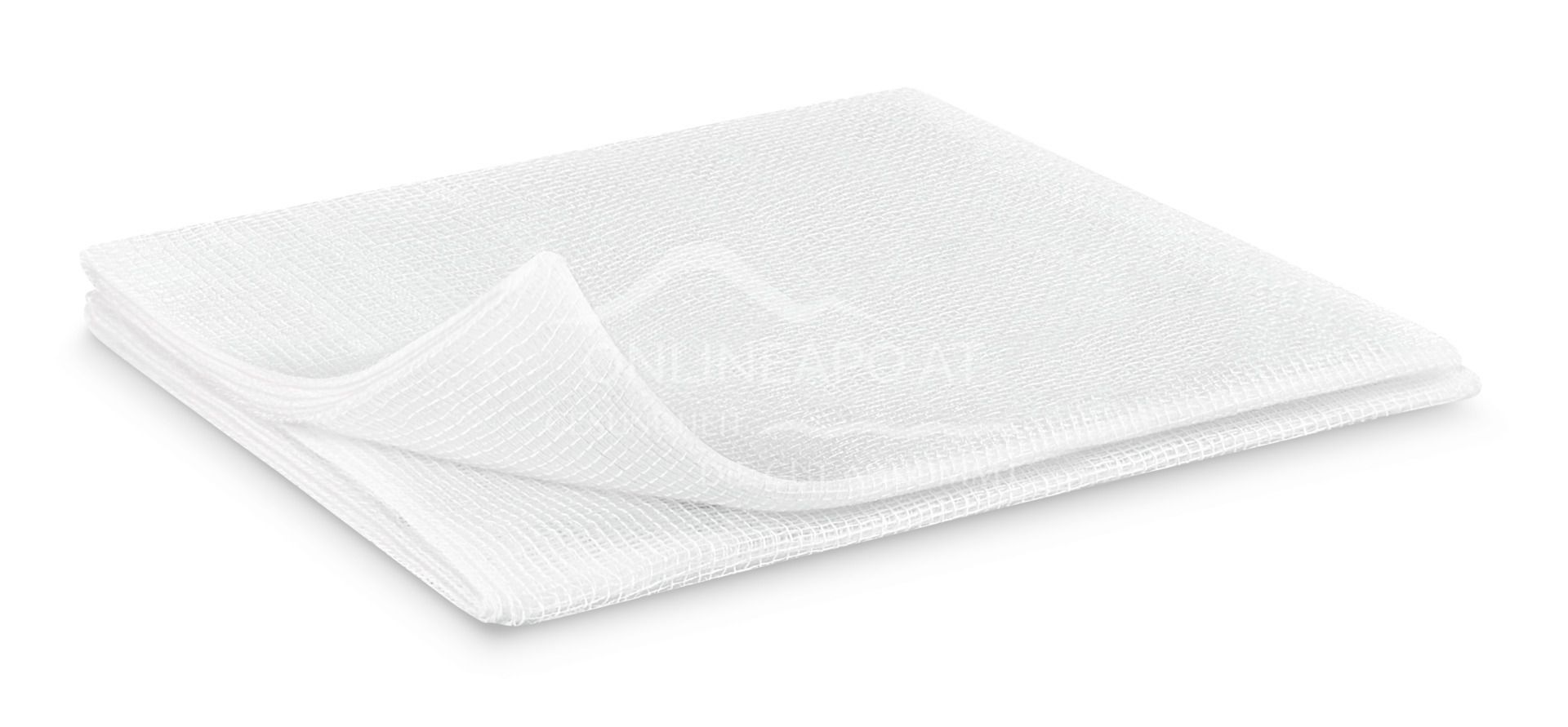 Made of gauze EN 14079, 17-thread, with folded cut edges (= ES), can also be used folded out several times in larger formats, without disturbing edge threads, good absorbency, air-permeable, soft and supple.