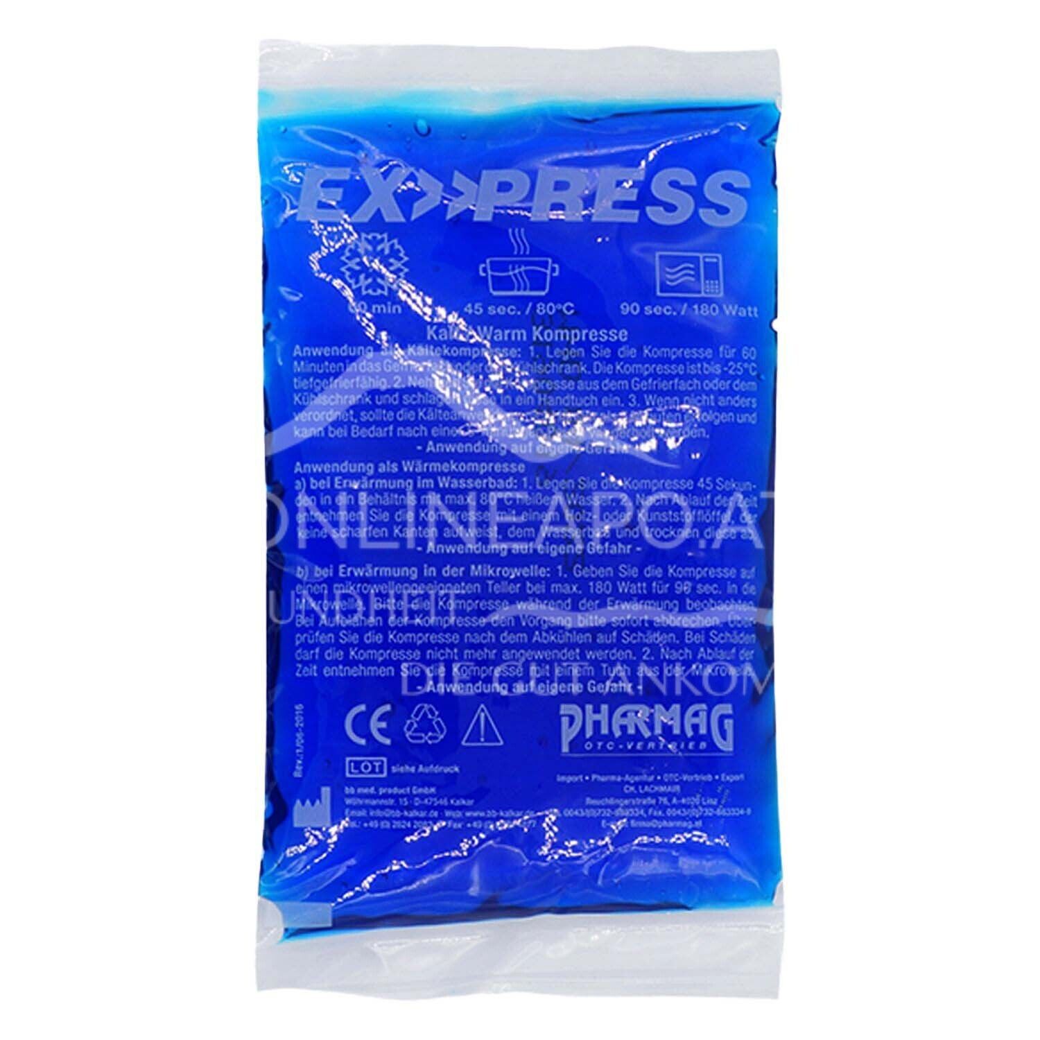 Die Express Kalt-Warm-Kompresse ist wieder verwendbar und findet überwiegend in Sportbereichen, zur schnellen Kühlung von leichten Sportverletzungen, ihren Einsatz. Aber sie eignet sich ebenso für jeden privaten Haushalt oder wird zur Wärmetherapie bei z.B. Menstruationsbeschwerden oder Rückenschmerzen verwendet.