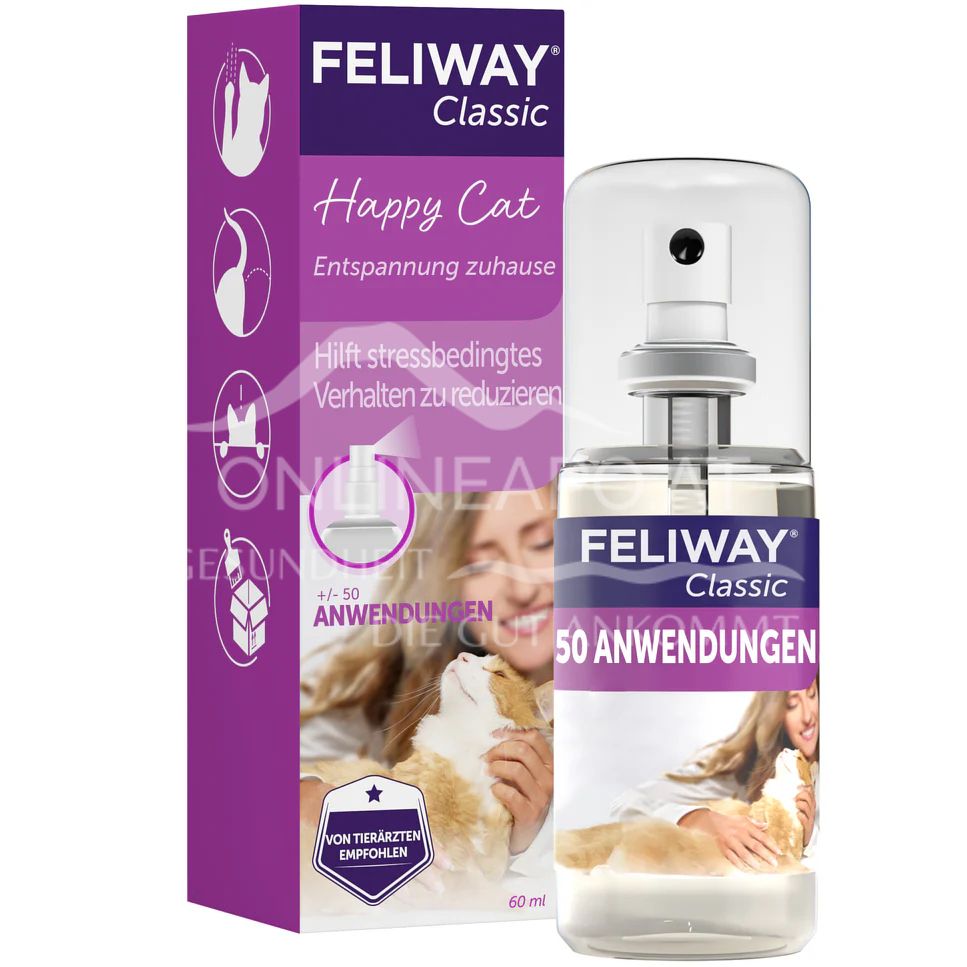 FELIWAY® Classic Spray prevents stress when travelling by car and helps your cat to relax. Spray FELIWAY® Classic Spray into the transport box 15 minutes before setting off to make the journey easier for your cat. Does your cat pee against furniture and walls in the house or scratch furniture, walls and sofas? Spray the affected areas daily to prevent renewed marking.