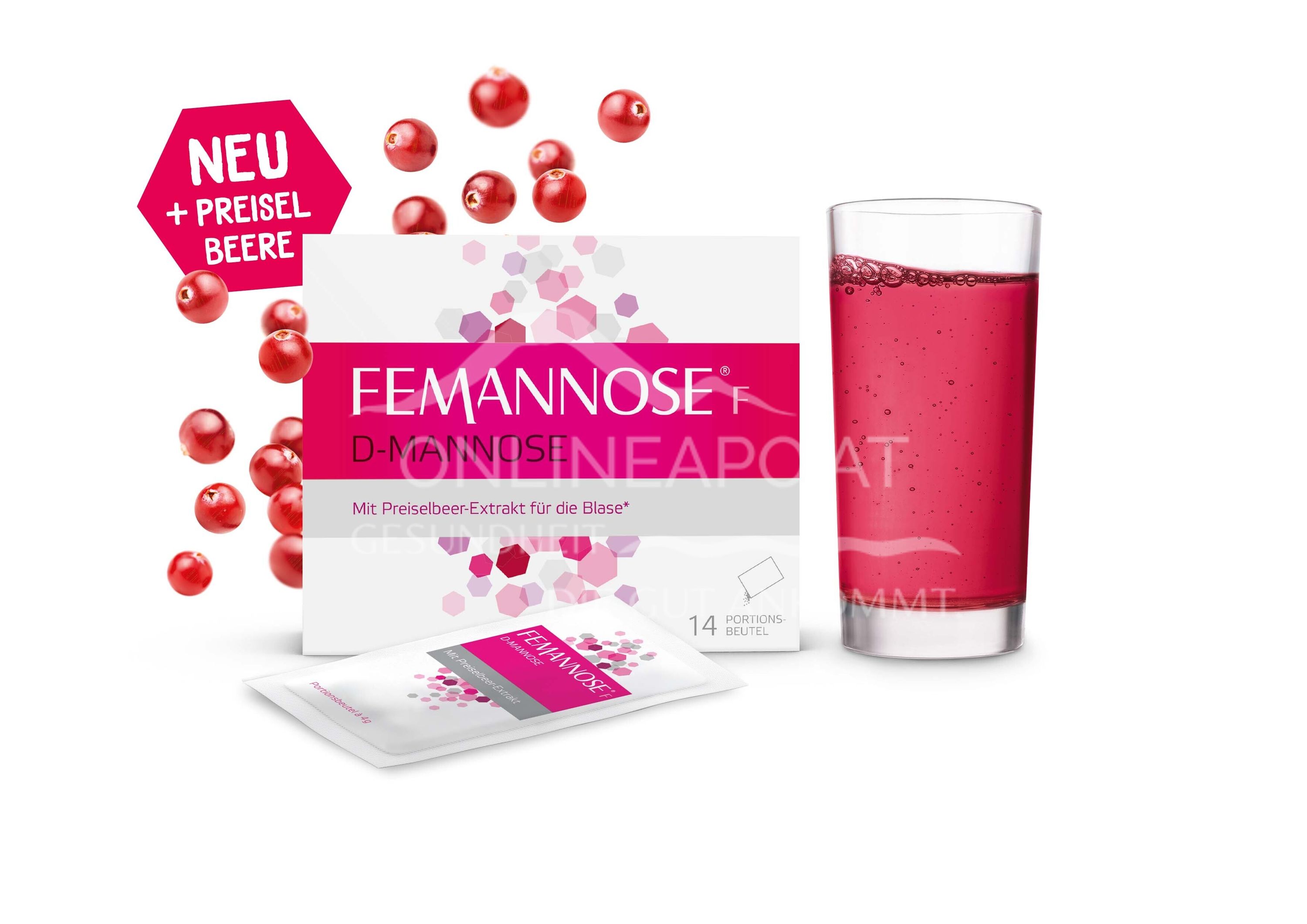 Die FEMANNOSE® F D-Mannose Sachets sind ein Nahrungsergänzungsmittel mit proanthocyanidinreichem Preiselbeer-Extrakt für die Blase. Preiselbeer-Extrakt trägt zum Erhalt der Harnwegs- und Blasenfunktion bei.
