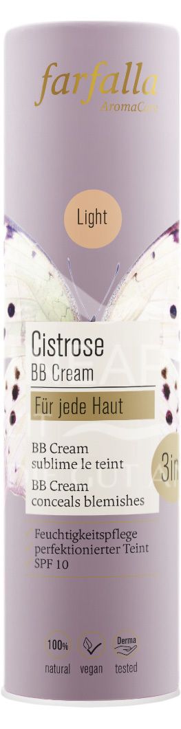 Discover the Farfalla Cistrose BB Cream light with SPF 10. The 3-in-1 formula with organic cistus provides intensive moisturisation, ensures an even complexion and protects the skin. For silky-soft, naturally radiant skin every day.