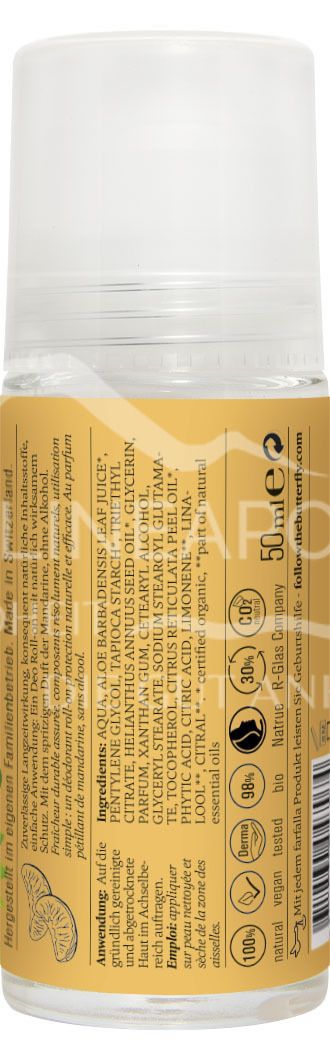 The Farfalla Mandarin Deodorant Roll-on with a fresh citrus scent neutralises odours in a natural way and cares for the skin. Vegan & without aluminium salts.
