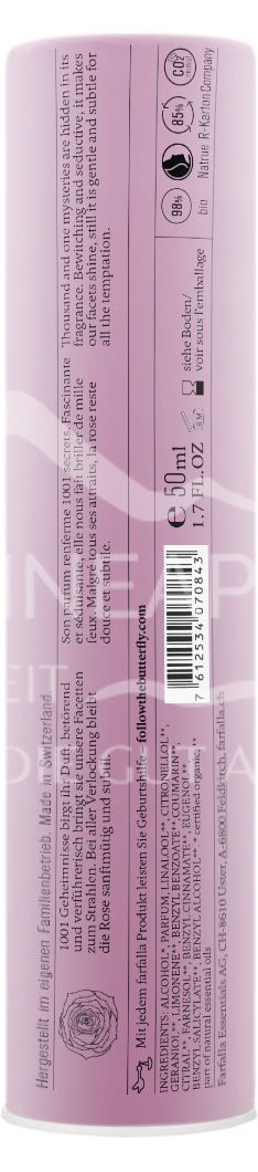 Discover the beguiling fragrance of Farfalla Rose, a natural eau de cologne with the floral aroma of roses.