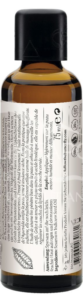 Discover Farfalla Sesame Organic Care Oil for a deeply effective detox treatment. The traditional Ayurvedic oil revitalises and regenerates dull, dry skin, has a detoxifying effect and makes the skin feel smooth and warm. Ideal for massages.