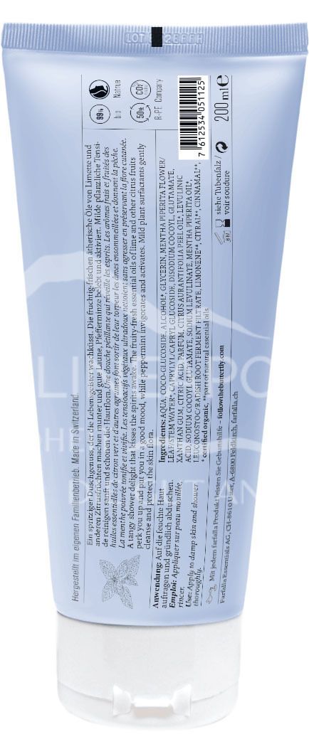 A tangy shower treat that kisses the spirits awake. The fruity, fresh essential oils of lime and other citrus fruits cheer you up and put you in a good mood, while peppermint revitalises and activates. Mild plant-based surfactants gently cleanse and protect the skin flora