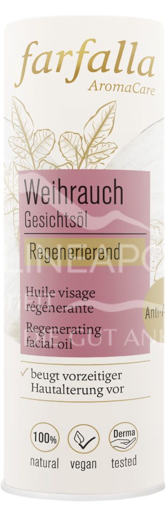Experience the renewing power of Farfalla facial oil with real frankincense. This luxurious skincare product supports cell renewal, smoothes fine lines and gives an even complexion. Ideal for demanding skin in need of regeneration.