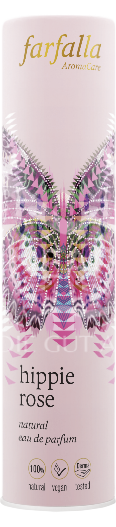 Let yourself be enchanted by Farfalla Hippie Rose. This eau de parfum combines floral notes of neroli and tuberose with a warm base of benzoin. A fragrance experience full of sweet temptation and sensual passion. 100% natural.