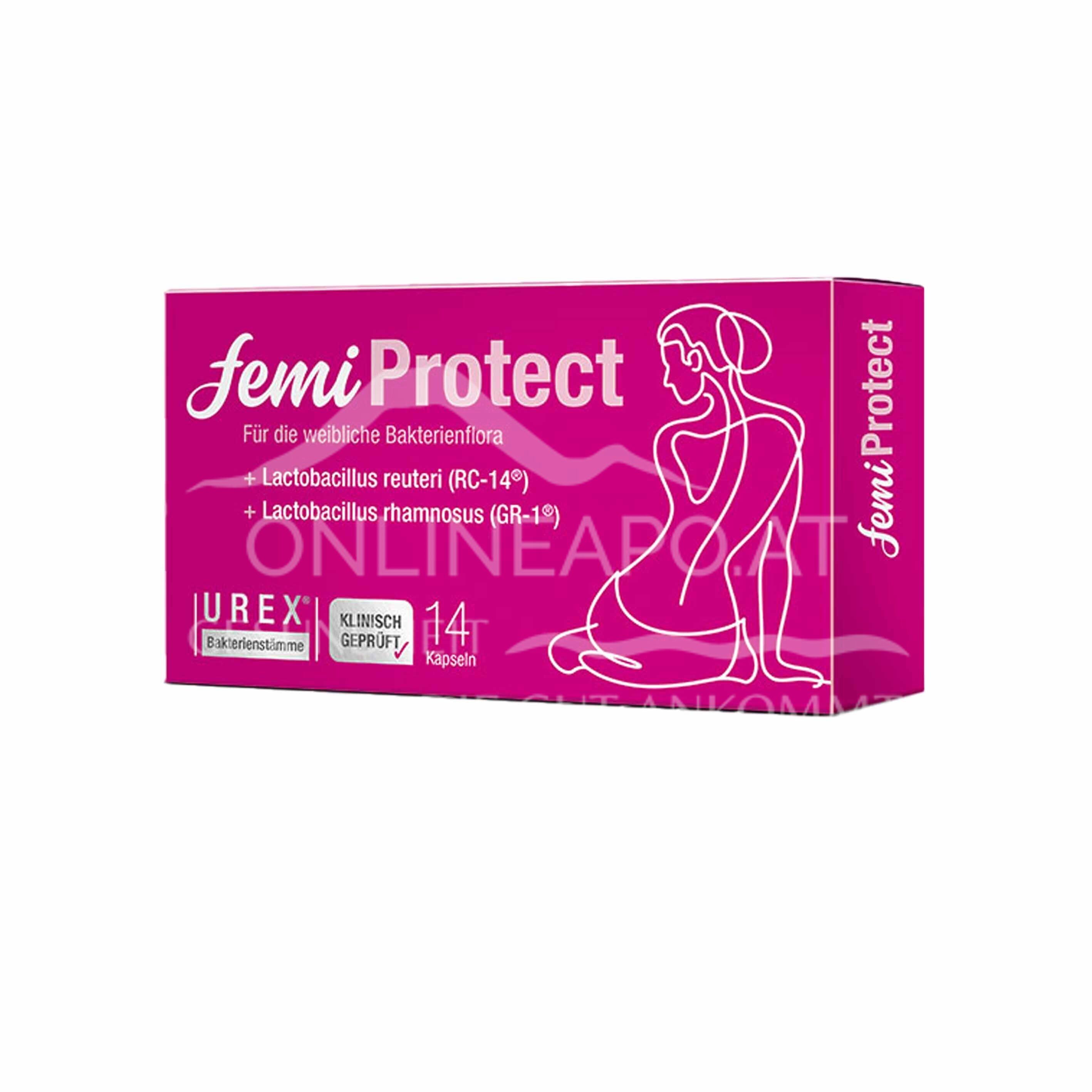 FemiProtect capsules are a food supplement with UREX® Lactobacillus strains Lactobacillus reuteri (RC-14®) and Lactobacillus rhamnosus (GR-1®) to support the female bacterial flora.