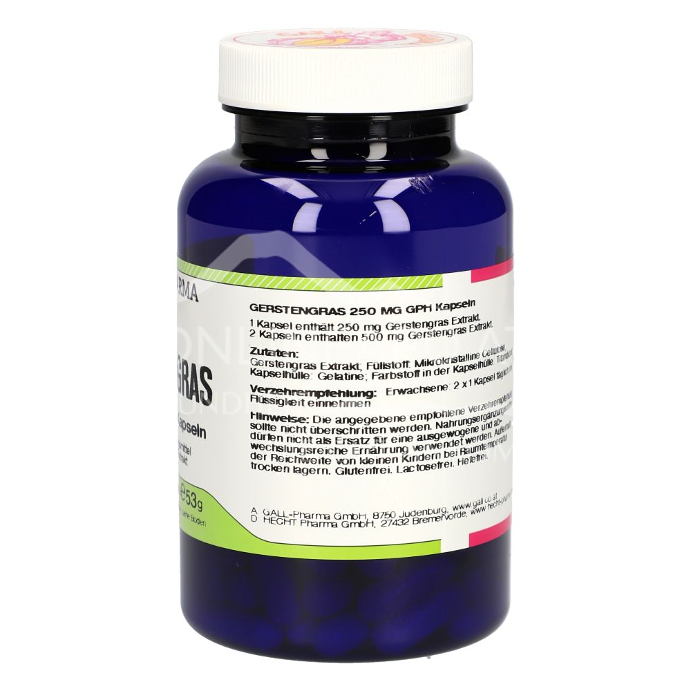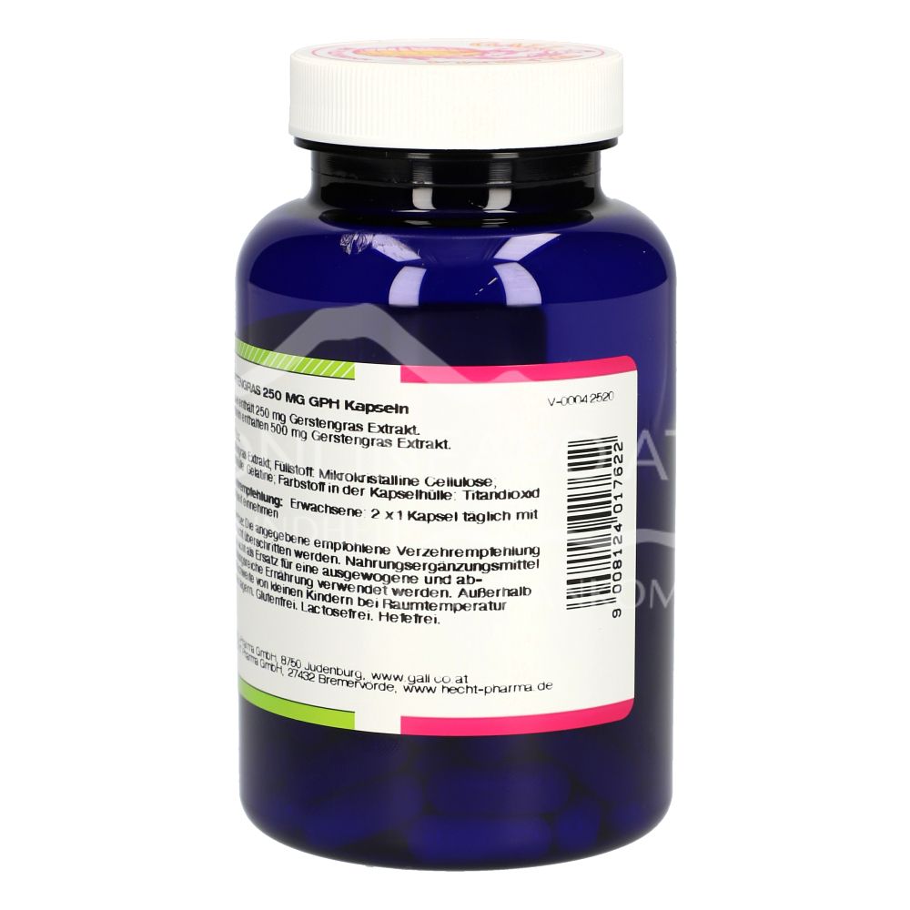 Gall Pharma Barley Grass 250 mg Capsules are a food supplement containing 250 mg of a 10:1 barley grass extract from the young grass of Hordeum distichon per capsule.
