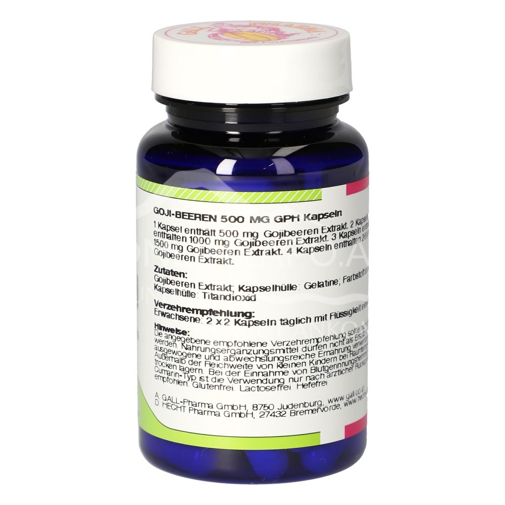 Gall Pharma Goji Berries 500 mg capsules are a food supplement containing 500 mg goji berry extract per capsule, standardised to a content of 50 % polysaccharides.