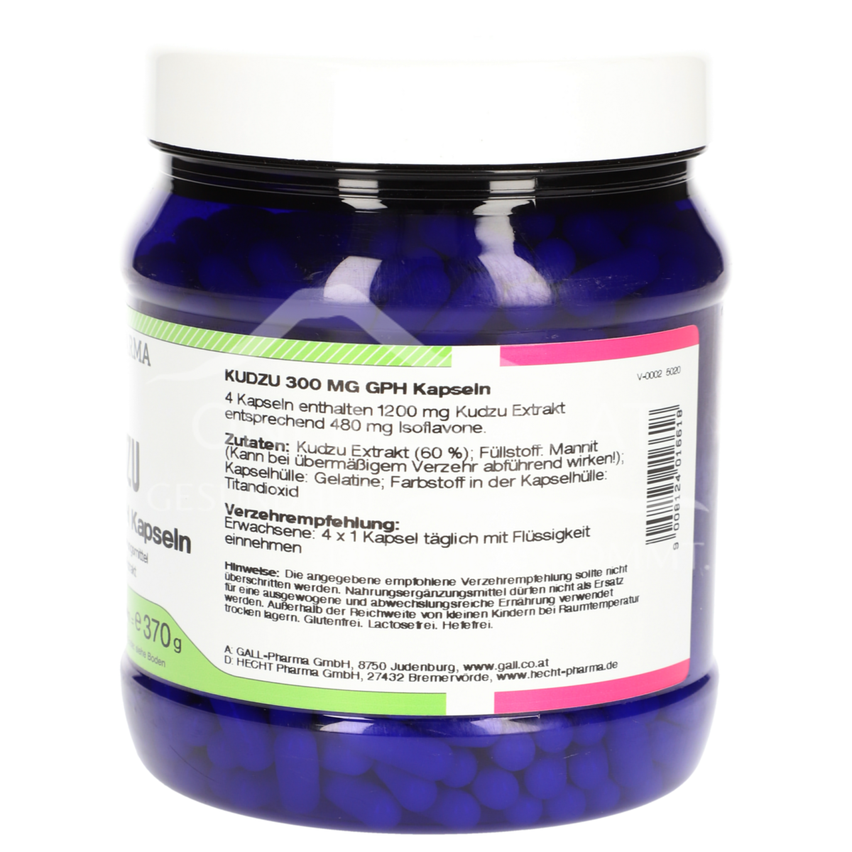 Gall Pharma Kudzu 300 mg capsules are a food supplement containing 300 mg of dry kudzu extract, standardised to 40 % isoflavones per capsule.