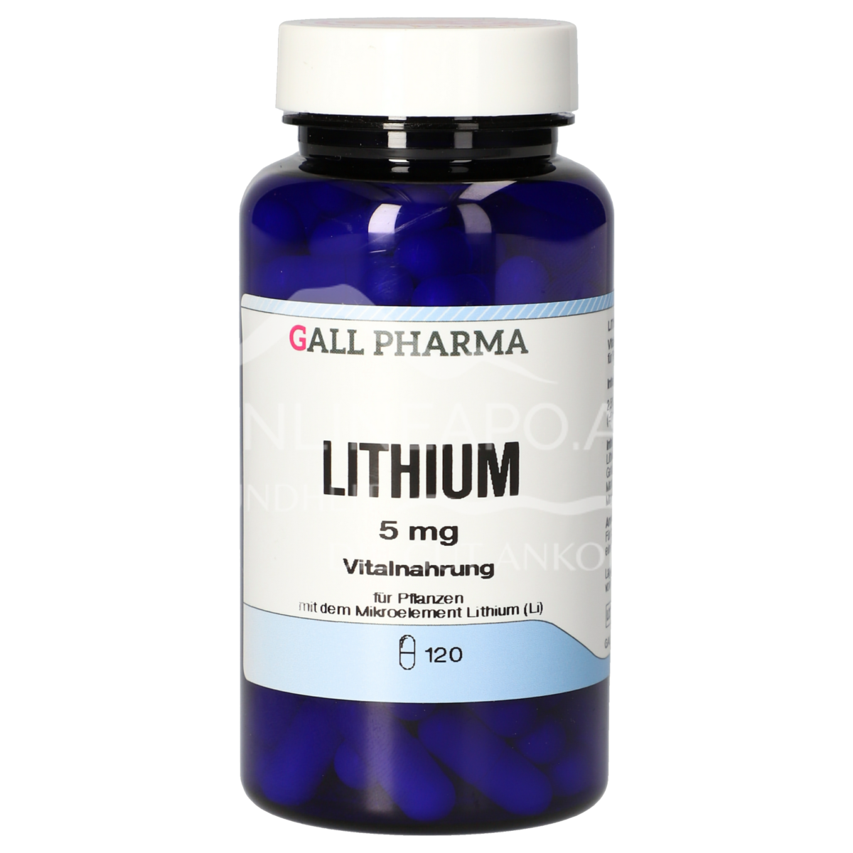 Gall Pharma Lithium 5 mg capsules are a product containing lithium orotate - the salt of orotic acid and the trace element lithium. 1 capsule contains 130 mg lithium orotate monohydrate corresponding to 5 mg lithium.