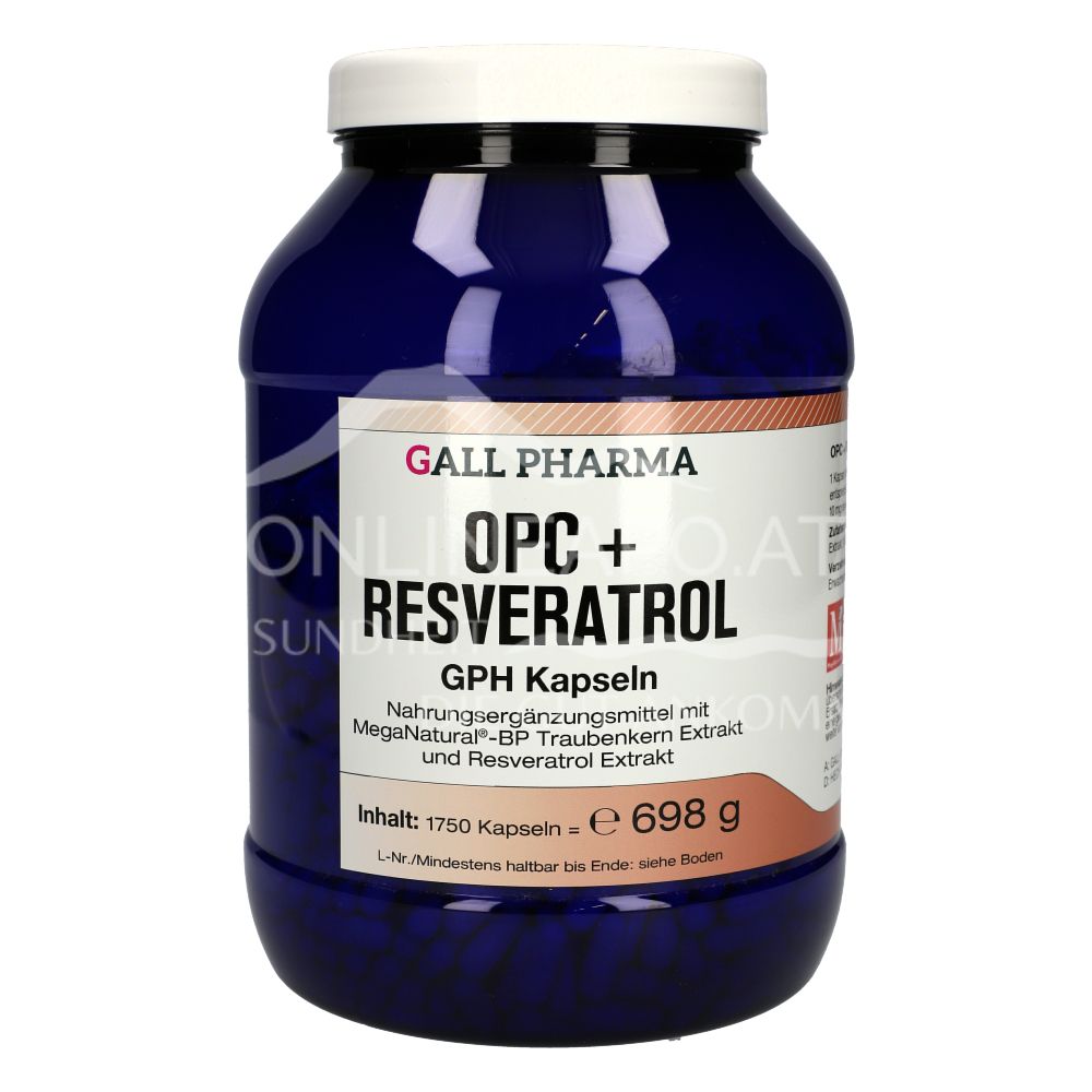 Gall Pharma OPC + Resveratrol capsules are a dietary supplement with MegaNatural®-BP grape seed extract and resveratrol extract, two valuable antioxidants that protect the body from free radicals and support cell health.