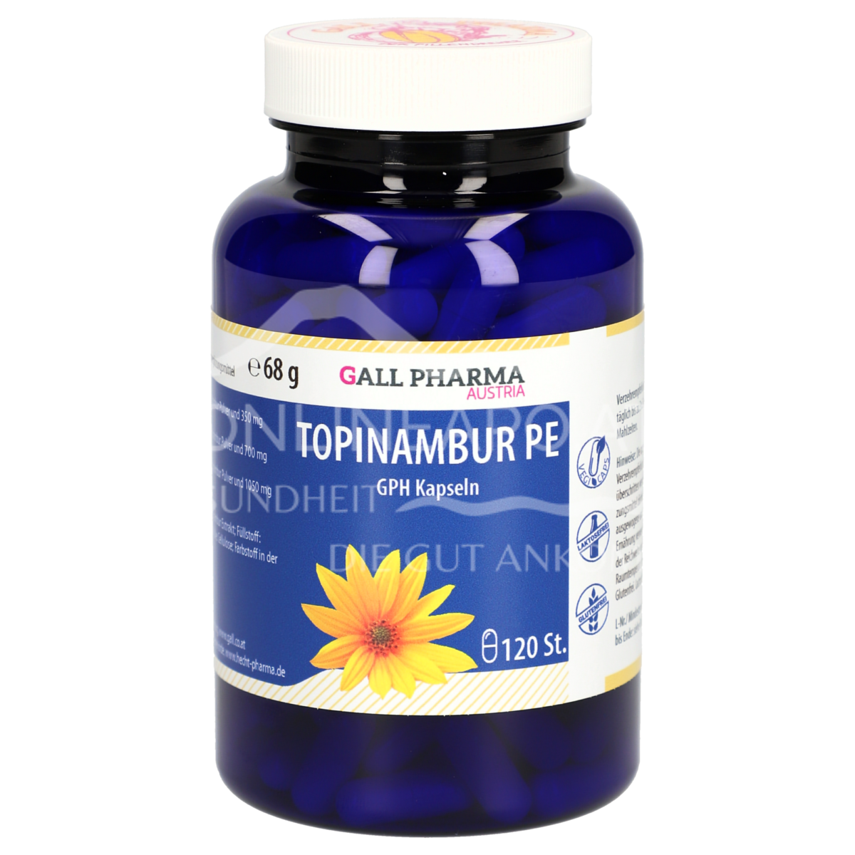 Gall Pharma Topinambur PE capsules are a food supplement with 534 mg topinambur powder and 350 mg topinambur extract per 2 capsules. To support natural digestion, increase the feeling of satiety and curb the appetite.