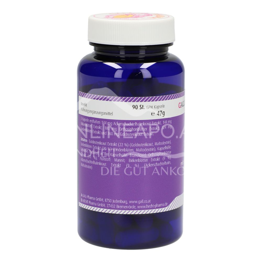 Gall Pharma URO Fit capsules are a dietary supplement with herbal extracts of field horsetail, birch leaves, orthosiphon leaves, lime blossom and goldenrod.