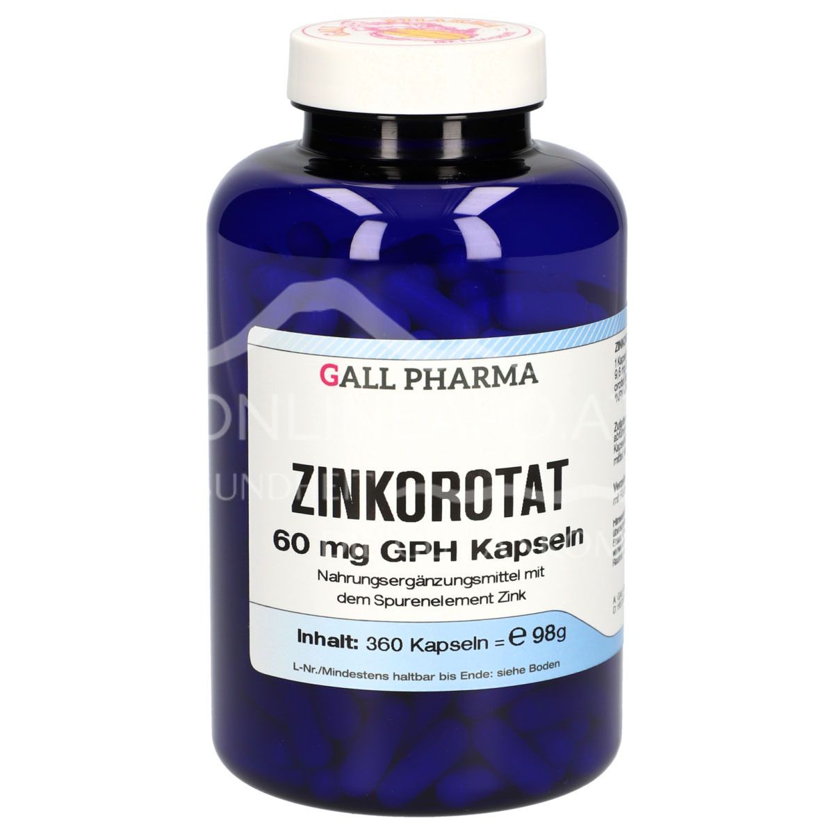 Gall Pharma Zinkorotat 60 mg capsules contain high-quality zinc in a readily utilisable form. Zinc is essential for many bodily functions, such as the immune system, skin and hair.