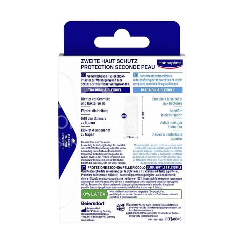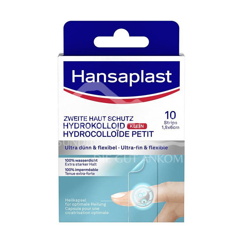 Protect your wound discreetly with Hansaplast Second Skin Protection Strips. The hydrocolloid plasters promote natural wound healing, are waterproof and offer long-lasting protection. Ultra thin, flexible and waterproof - with healing capsule.