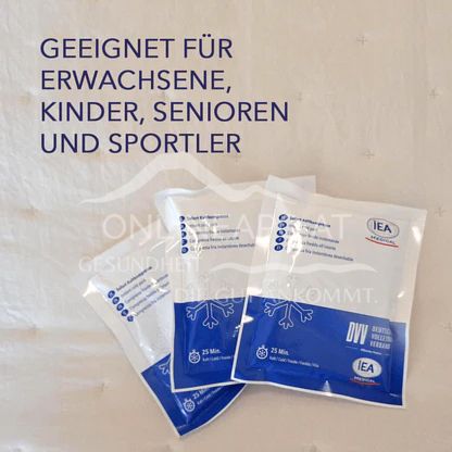 - Durch leichtes Drücken und Schütteln des Beutels wird eine chemische Reaktion aktiviert, die sofortige Kälte erzeugt.
