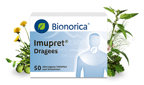 Imupret Dragees ist ein traditionelles pflanzliches Arzneimittel zur Anwendung bei ersten Anzeichen und während einer Erkältung, z. B. Kratzen im Hals, Halsschmerzen, Schluckbeschwerden oder Hustenreiz.