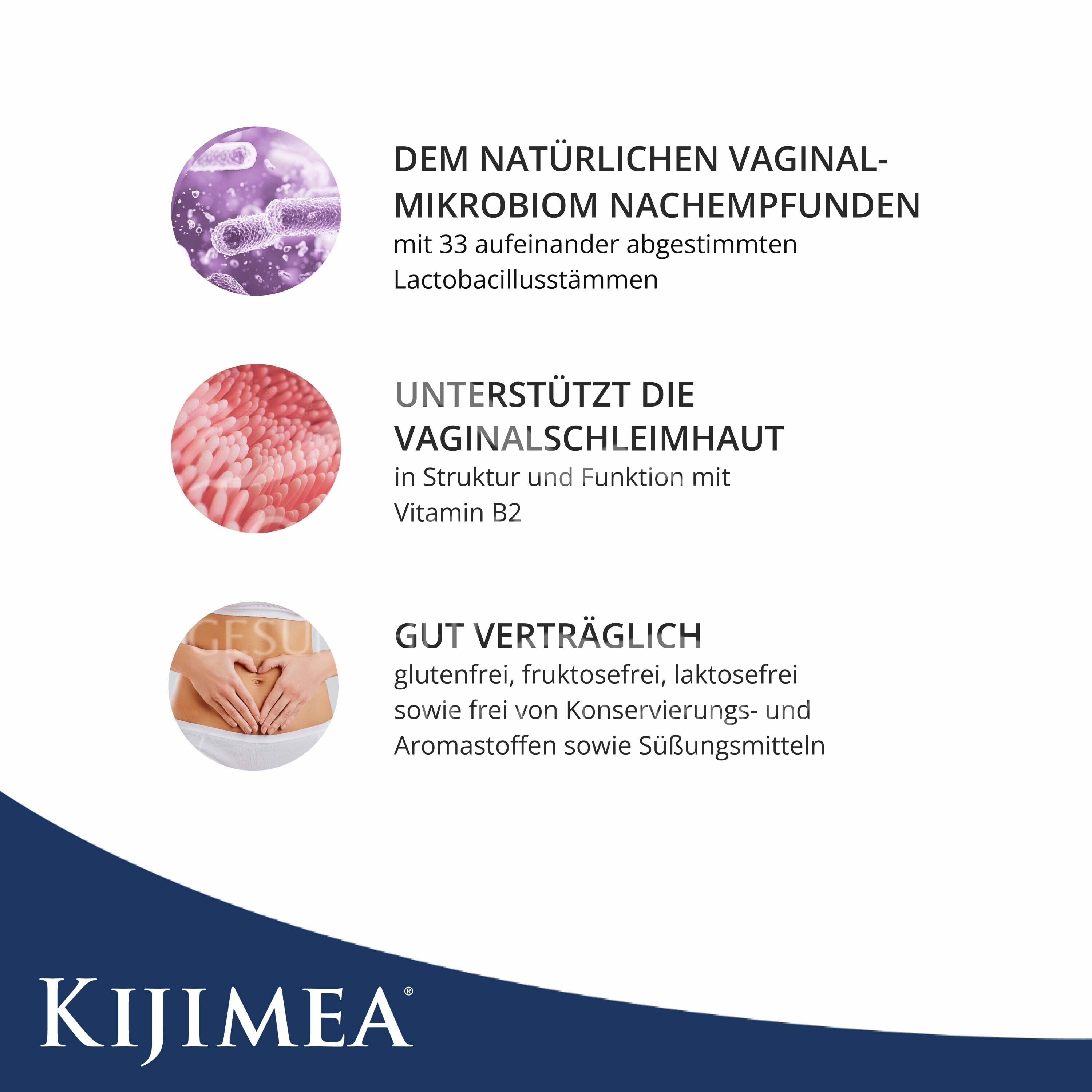Kijimea® FloraCare ist ein Nahrungsgergänzungsmittel aus 33 speziell aufeinander abgestimmten Lactobacillusstämmen. Zusätzlich enthält es Vitamin B3, B7 und B2, die zur Erhaltung normaler Schleimhäute (z.B. der Vaginalschleimhaut) beitragen.