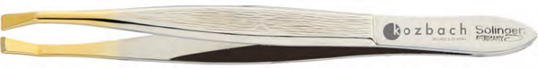 Hochwertige Qualität von Kozbach Pharma: Die abgewinkelte Pinzette Nr. 23 (7,5 cm) besitzt eine vergoldete Spitze für optimale Griffigkeit und sanfte Anwendung. Perfekt geeignet zum präzisen Entfernen von Haaren oder Splittern. Langlebig und rostfrei.