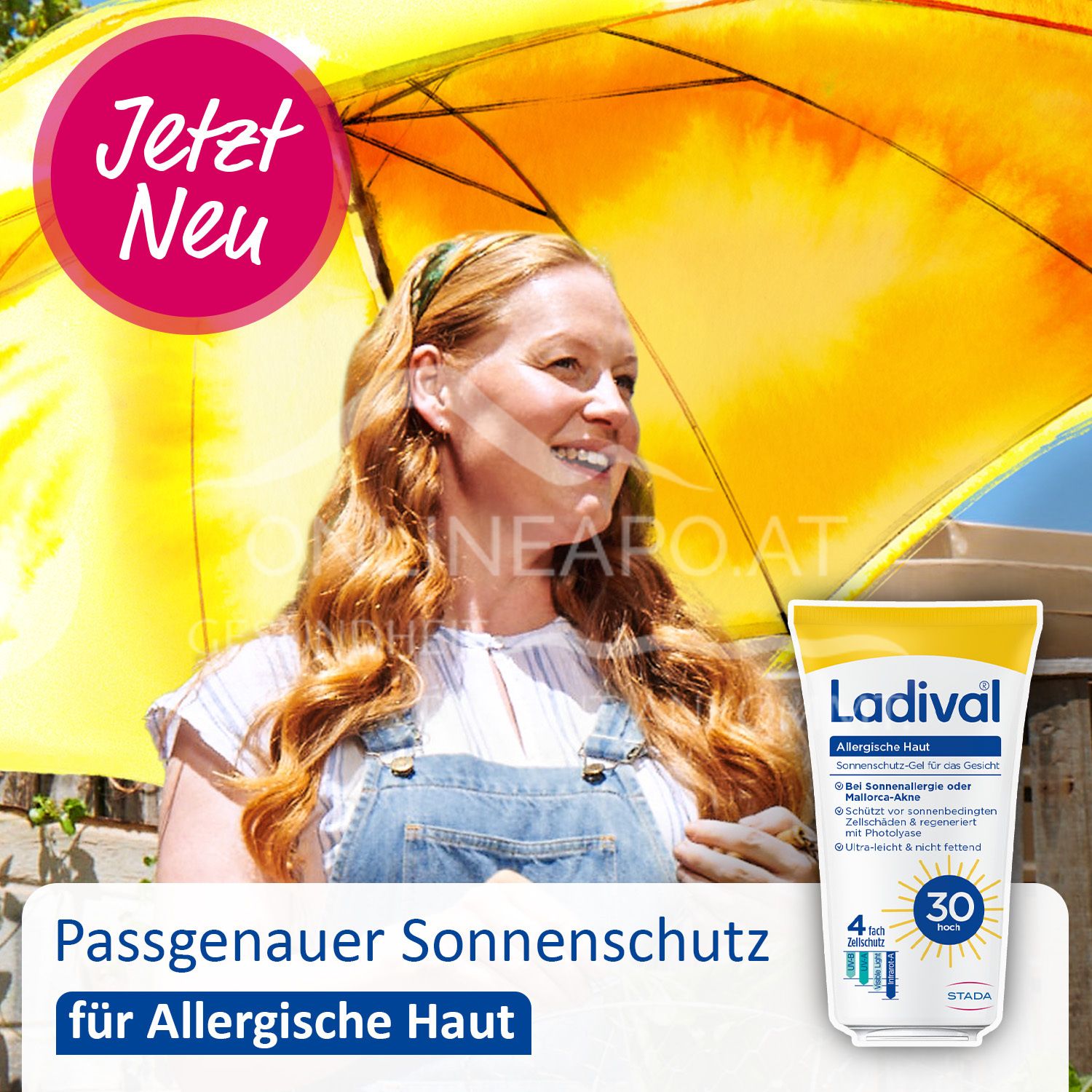 Ganzjähriger Sonnenschutz ist essenziell, da er nicht nur vor Sonnenbrand und sonnenbedingter Hautalterung schützt, sondern auch das Risiko an Hautkrebs zu erkranken reduziert. Um Menschen mit allergischer Haut optimal zu versorgen, bietet Ladival® die Allergische Haut-Serie an. Diese wurde speziell für Haut entwickelt, die zu Sonnenallergie (polymorphe Lichtdermatose/PLD) und Mallorca-Akne neigt.