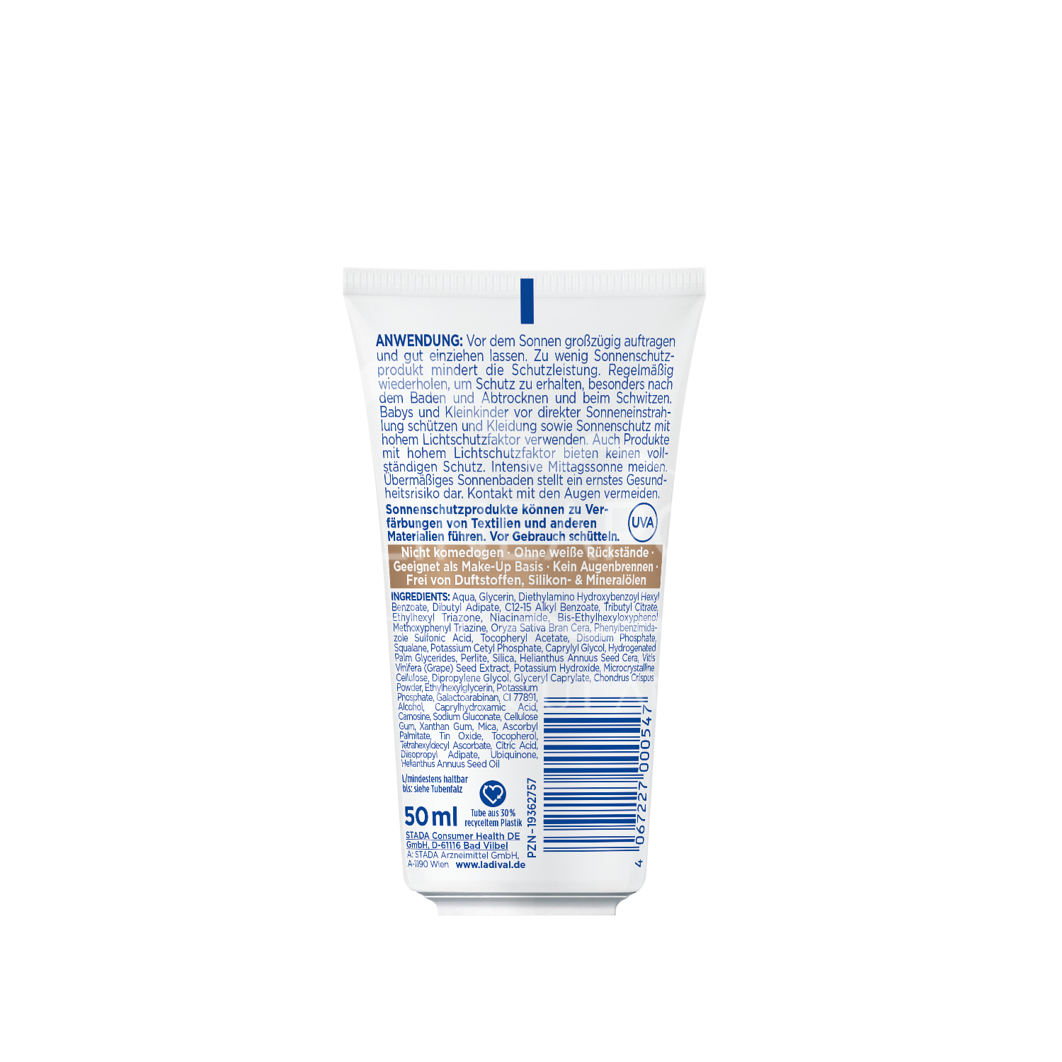 Dank ihrer leichten und pflegenden Rezeptur zieht die Sonnenschutz-Creme schnell ein und bietet eine ideale Grundlage für Make-Up. Sie schützt Ihre Haut effektiv vor sonnenbedingten Zellschäden und beugt mit Niacinamid und Vitamin E Pigmentflecken und vorzeitiger lichtbedingter Hautalterung vor. Die nicht komedogene Formel ist bei empfindlicher Haut, Mischhaut, sowie zu Akne neigender Haut gut geeignet. Die Creme legt sich sanft und unsichtbar auf die Haut, ohne Augenreizungen, Pilling-Effekte (Klumpen des Produktes auf der Haut), oder weiße Rückstände zu hinterlassen – so ist die Sonnenschutz-Ceme der perfekte Begleiter im Alltag.