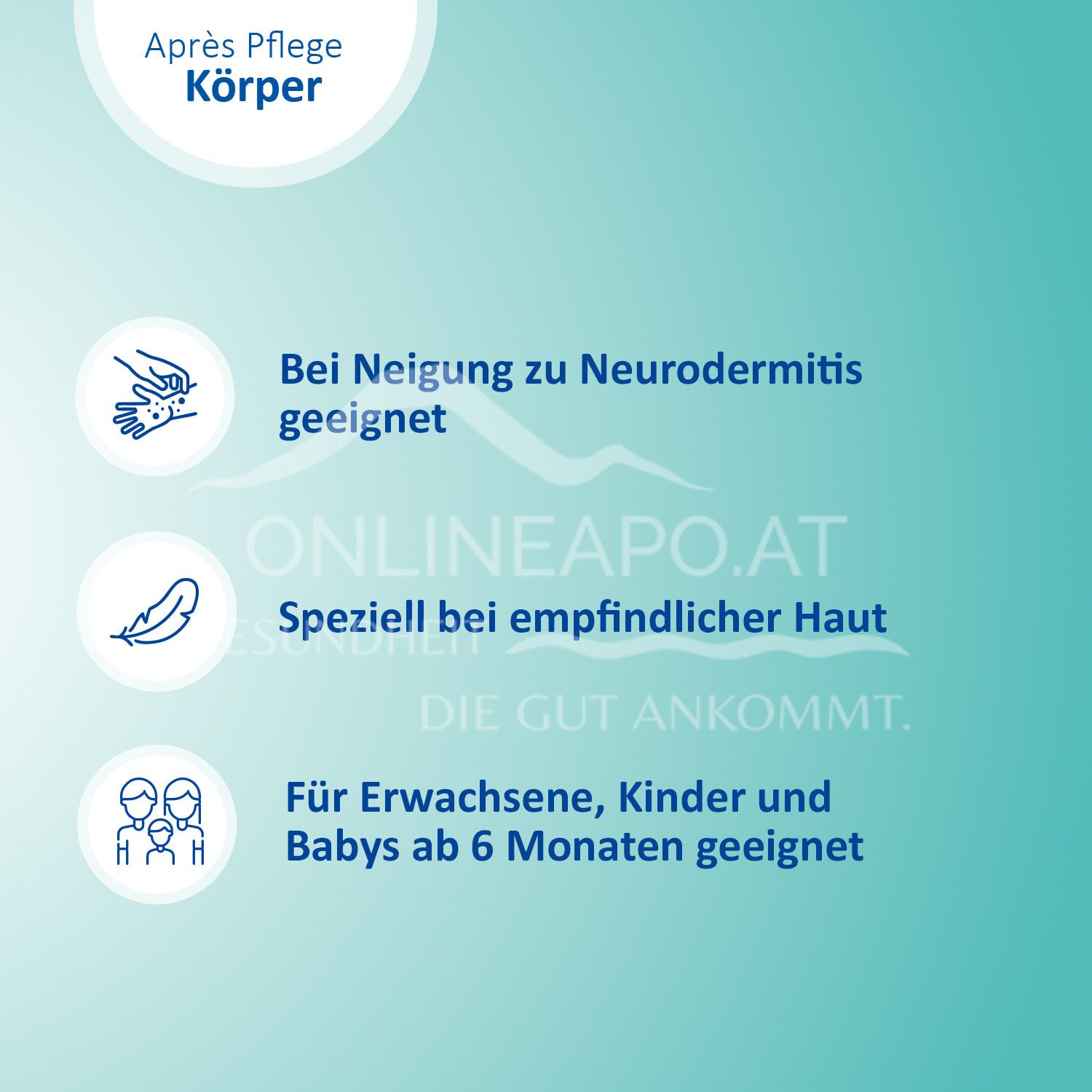 Die Après Pflege-Lotion kühlt sofort angenehm nach dem Auftragen und spendet Ihrer Haut Feuchtigkeit.