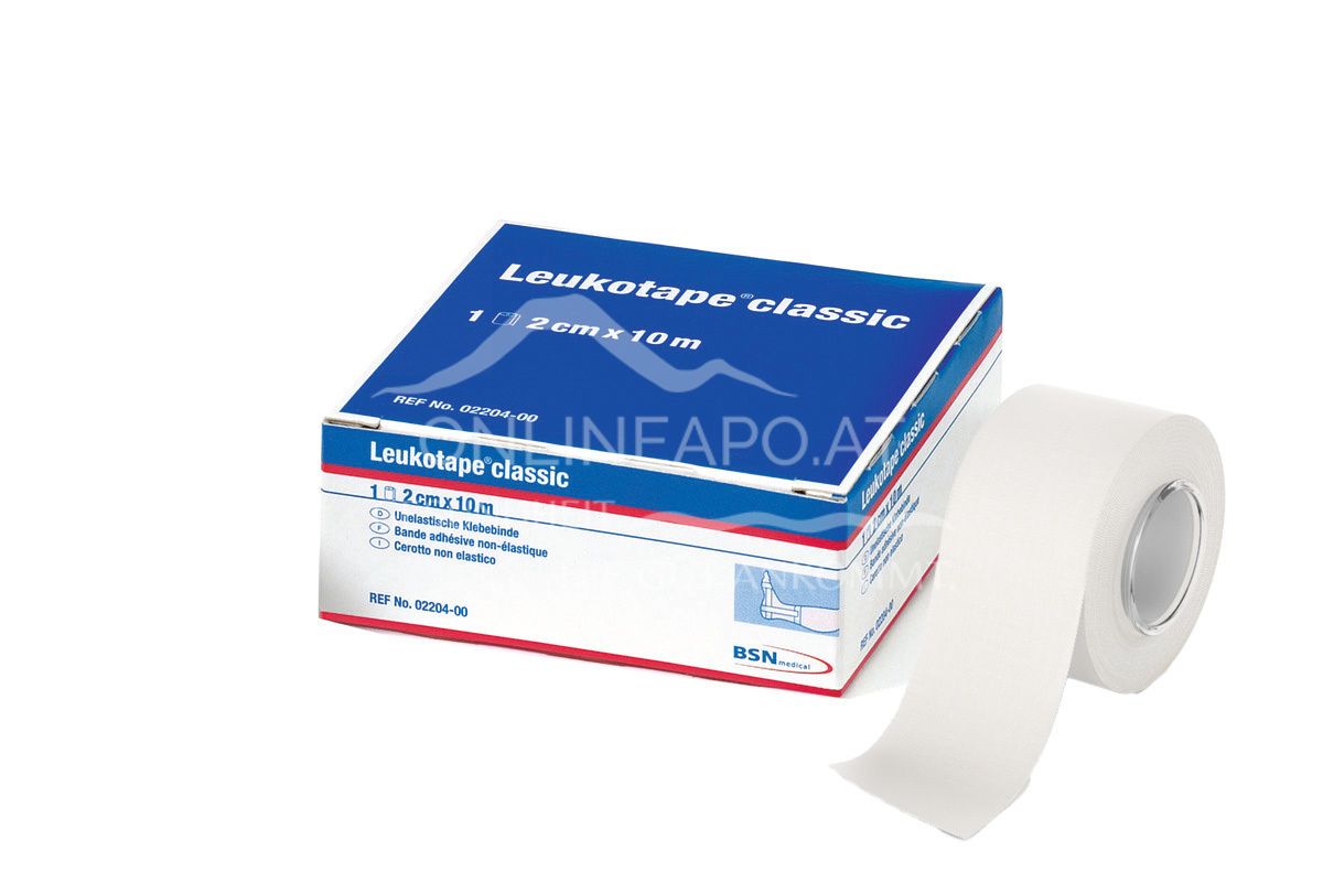 Leukotape® classic has a high adhesive strength and is water-repellent. It is particularly tensile and inelastic. Suitable for functional dressings for injuries to muscles, ligaments and joints.