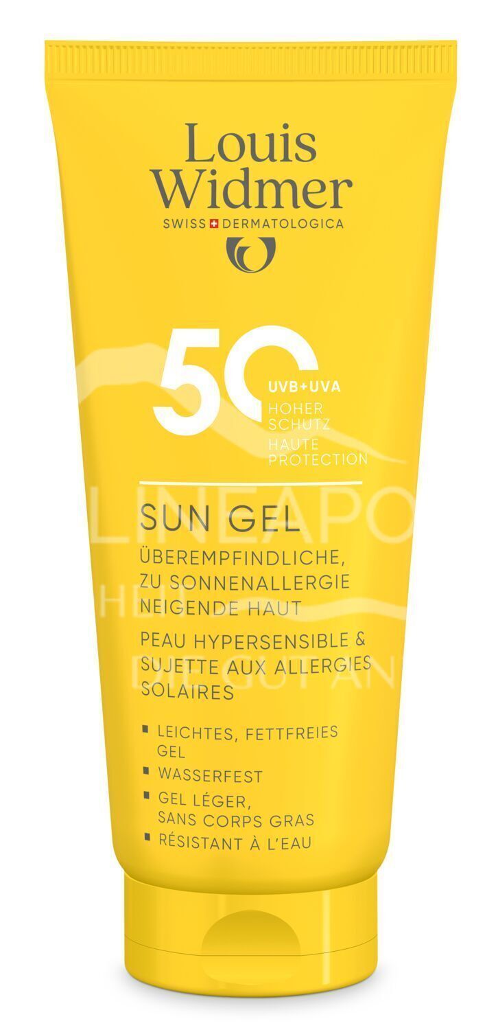 Louis Widmer suncare Sun Gel 50: Waterproof, light, oil and emulsifier-free gel for optimum protection against UVA & UVB rays. Ideal for sensitive, oily & sun allergy-prone skin.