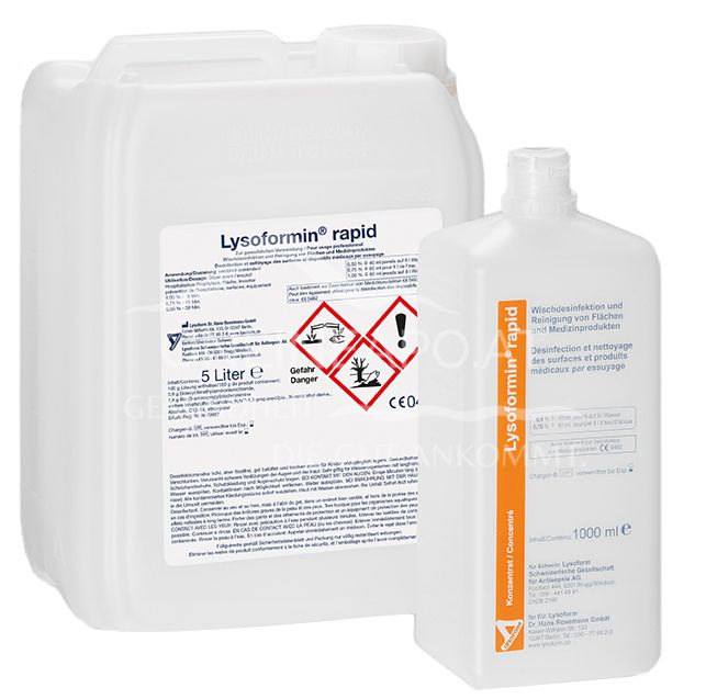 - Lysoformin® rapid is a liquid concentrate that can be used to prepare any desired working dilution by adding water (max. room temperature). Always pour in water first and then add Lysoformin® rapid. Objects that come into contact with food must be rinsed with drinking water after disinfection/cleaning.