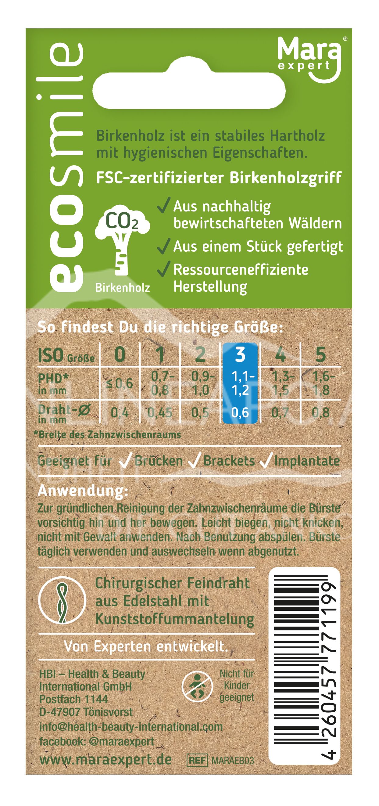 Mara Expert ecosmile INTERDENTAL BRUSHES ISO 3, medium for your most beautiful smile and a clear conscience for the environment.