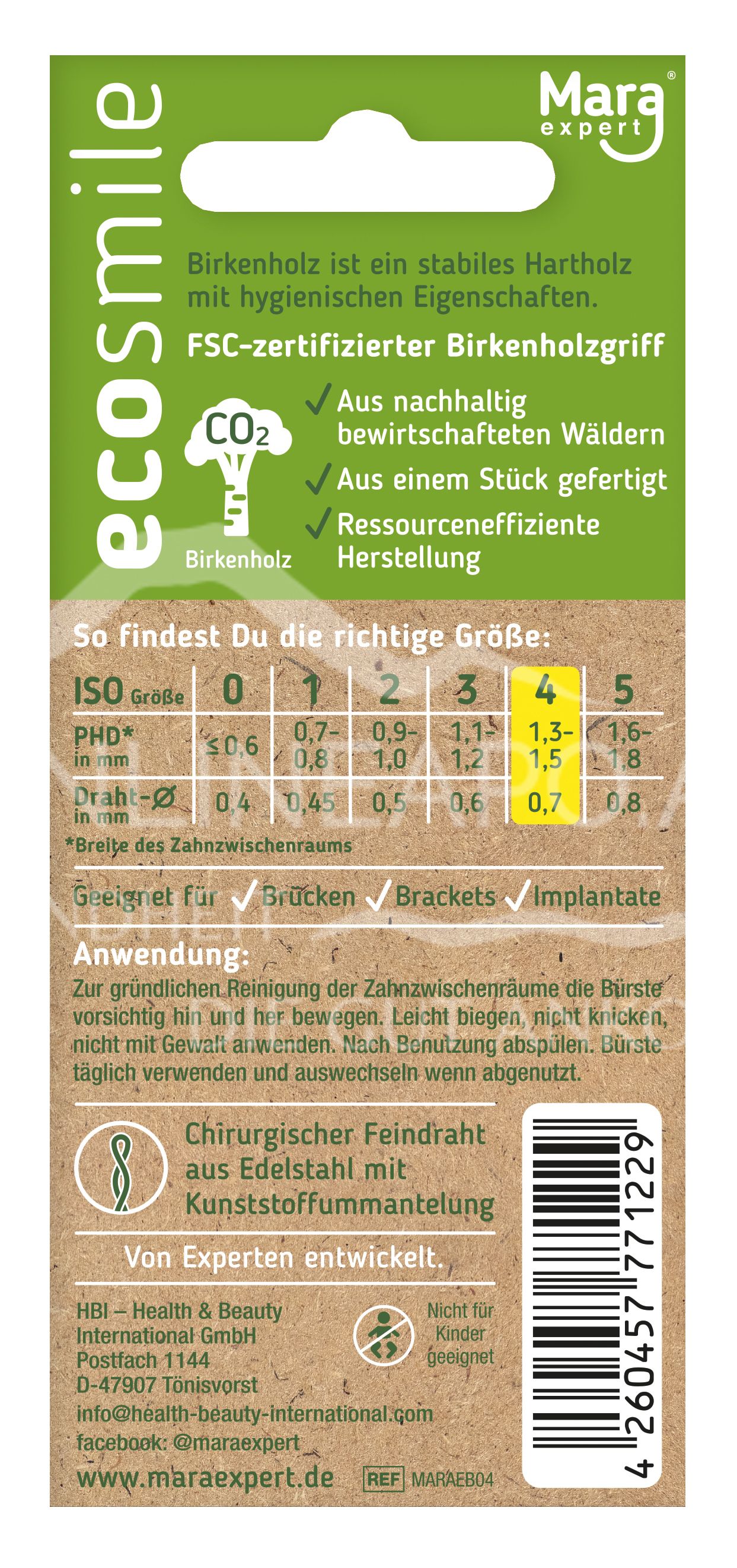 Mara Expert ecosmile INTERDENTAL BRUSHES ISO 4, medium width for your best smile and a clear conscience for the environment.