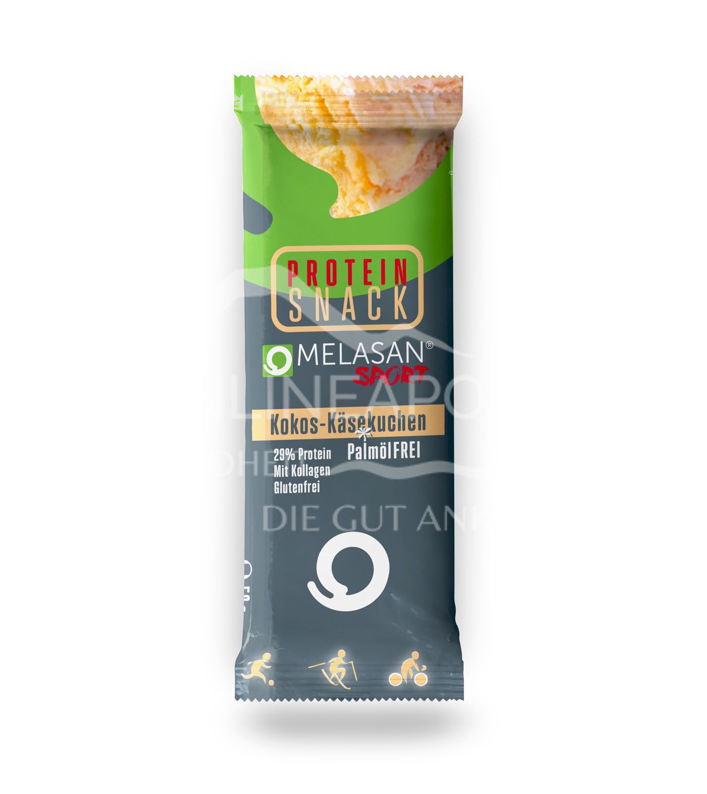 Entdecken Sie den köstlichen Melasan Protein Snack mit Kokos-Käsekuchen Geschmack! Ideal als proteinreicher Snack nach dem Training oder für zwischendurch.