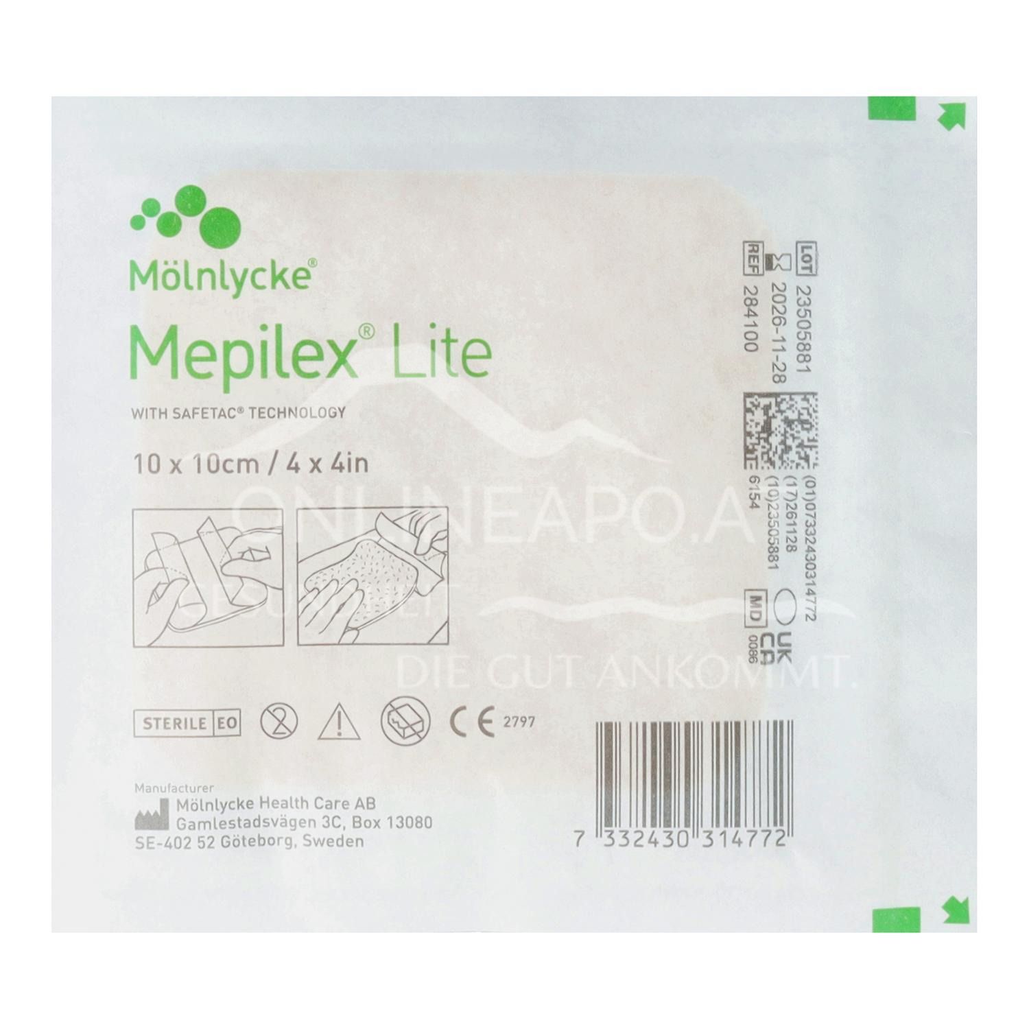 - Apply the adhesive side to the wound. Do not stretch the dressing. Mepilex Lite should overlap the wound by at least two centimetres.