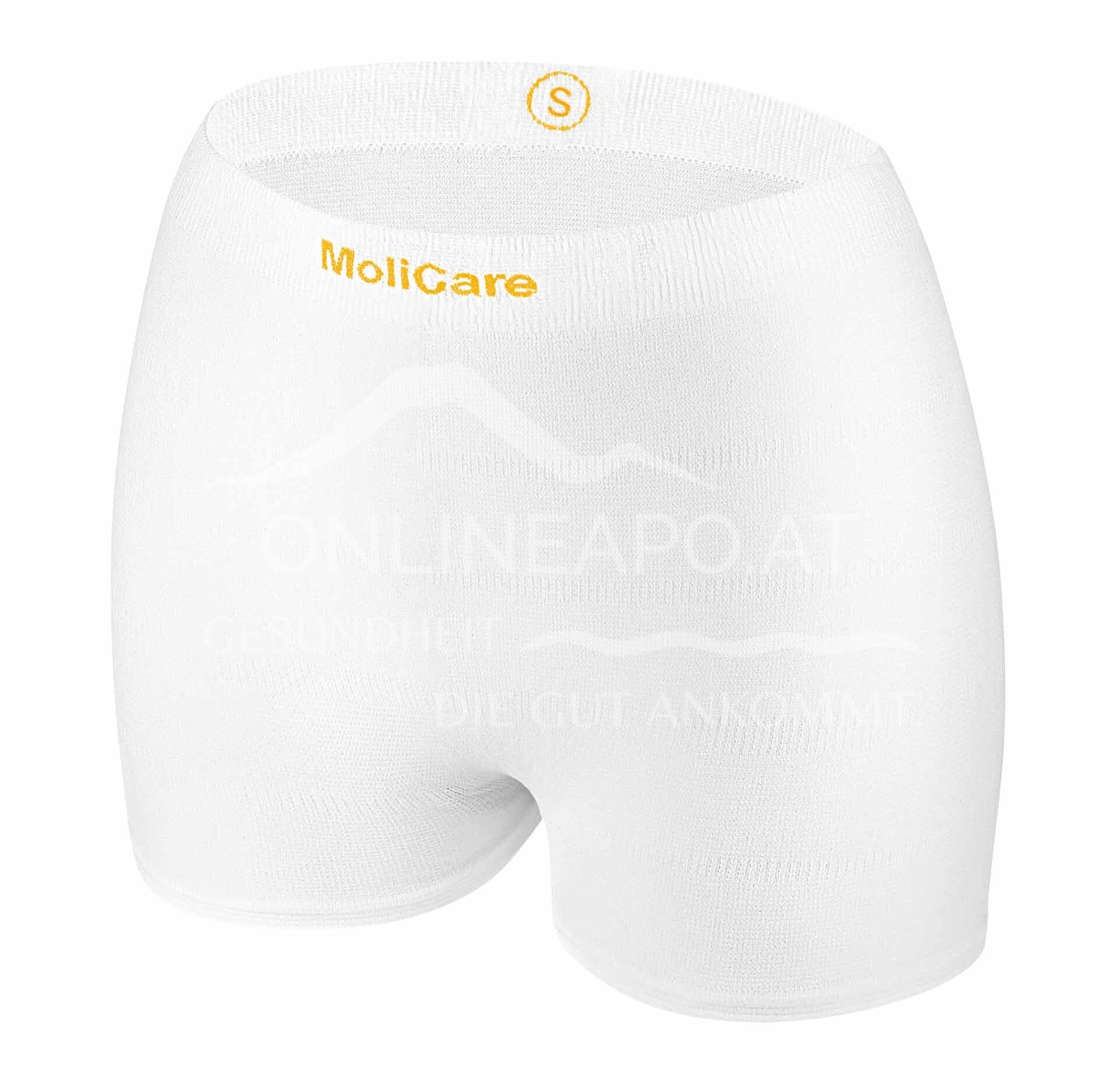MoliCare Premium Fixpants ensure a secure fit for anatomically shaped incontinence pads and pads. The close-meshed structure of the material makes it particularly resistant to running and gives MoliCare Premium Fixpants an underwear-like appearance with good visibility of the wetness indicator. The soft cuffs, the skin-friendly, air-permeable material, the permanently elasticated cross threads and the extended leg base ensure a high level of comfort. The colour coding of the size on the waistband makes the daily work of care staff easier. MoliCare Premium Fixpants can be washed up to 50 times at 60° C in a laundry net without losing their shape and are suitable for tumble drying at low temperatures