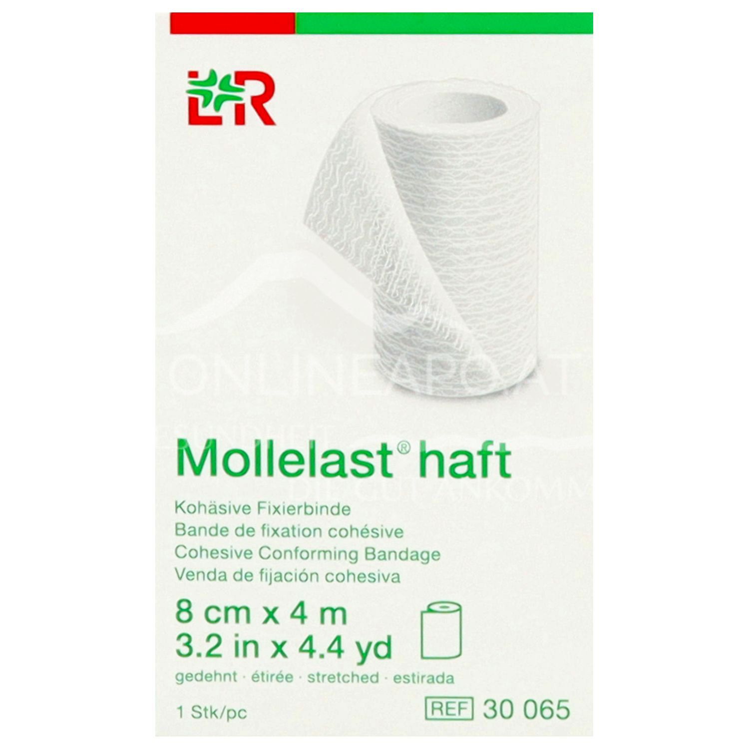 The cohesive bi-elastic fixation bandage with special stretch behaviour adheres to itself, but not to skin or hair. It is available in different versions to suit requirements: Mollelast haft, Mollelast haft colour and Mollelast haft latex-free.