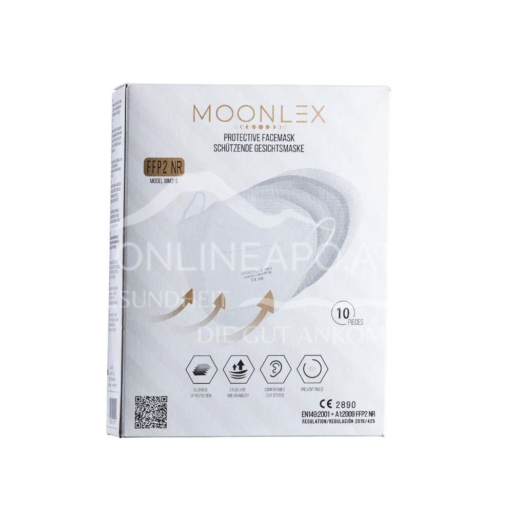 Entdecken Sie die weiße Moonlex FFP2 Atemschutzmaske für optimalen Schutz. Das 5-lagige Filtersystem ohne Ventil bietet hohe Filtrationseffizienz und angenehmen Tragekomfort für den Alltag, die Arbeit oder auf Reisen. CE-zertifiziert.