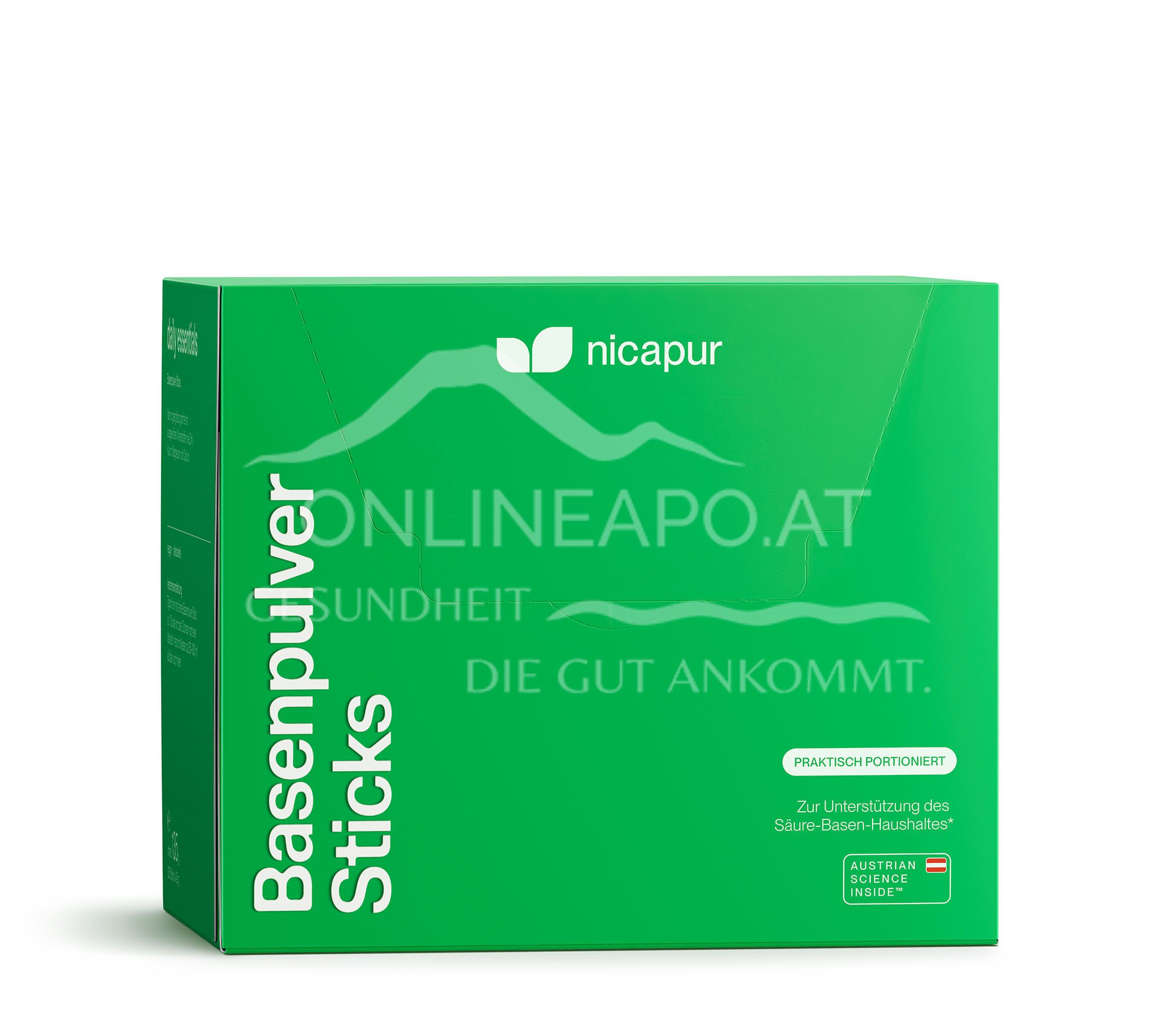 NICApur Basenpulver Sticks sind ein Nahrungsergänzungsmittel mit ausgewählten Mineralstoffverbindungen und dem Spurenelement Zink, das zu einem normalen Säure-Basen-Haushalt beiträgt.