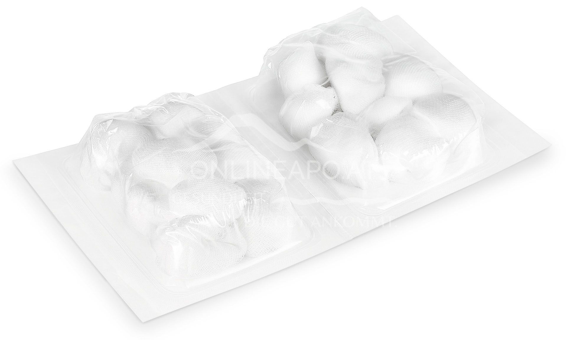 Sling gauze swabs made from EN 14079 gauze, 20-thread, the swab made from a single piece of gauze is interlaced so that the cut edges are securely inside, with high absorption capacity