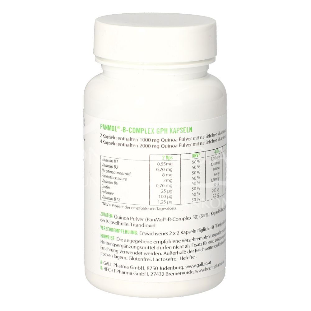 The PanMol®-B-Complex GPH capsules are a food supplement and contain 500 mg PanMol®-B-Complex powder with biologically active natural B vitamins per capsule.