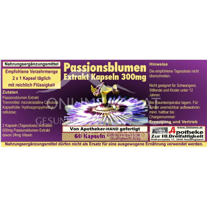 Passion flower 300 mg extract capsules are a dietary supplement containing high-dose passion flower extract. The passion flower is said to have a calming effect in folk medicine.
