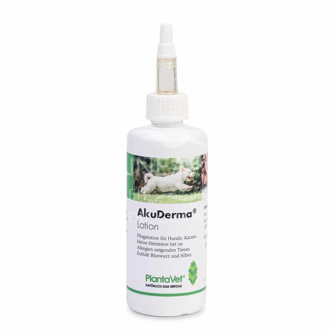 Die PlantaVet® AkuDerma® Lotion ist eine Pflegelotion mit Blutwurz und Silber für Hunde Katzen und kleine Heimtiere. Bei Neigung zu Allergien, die sich auf der Haut manifestieren. Enthält Blutwurz und Silber.