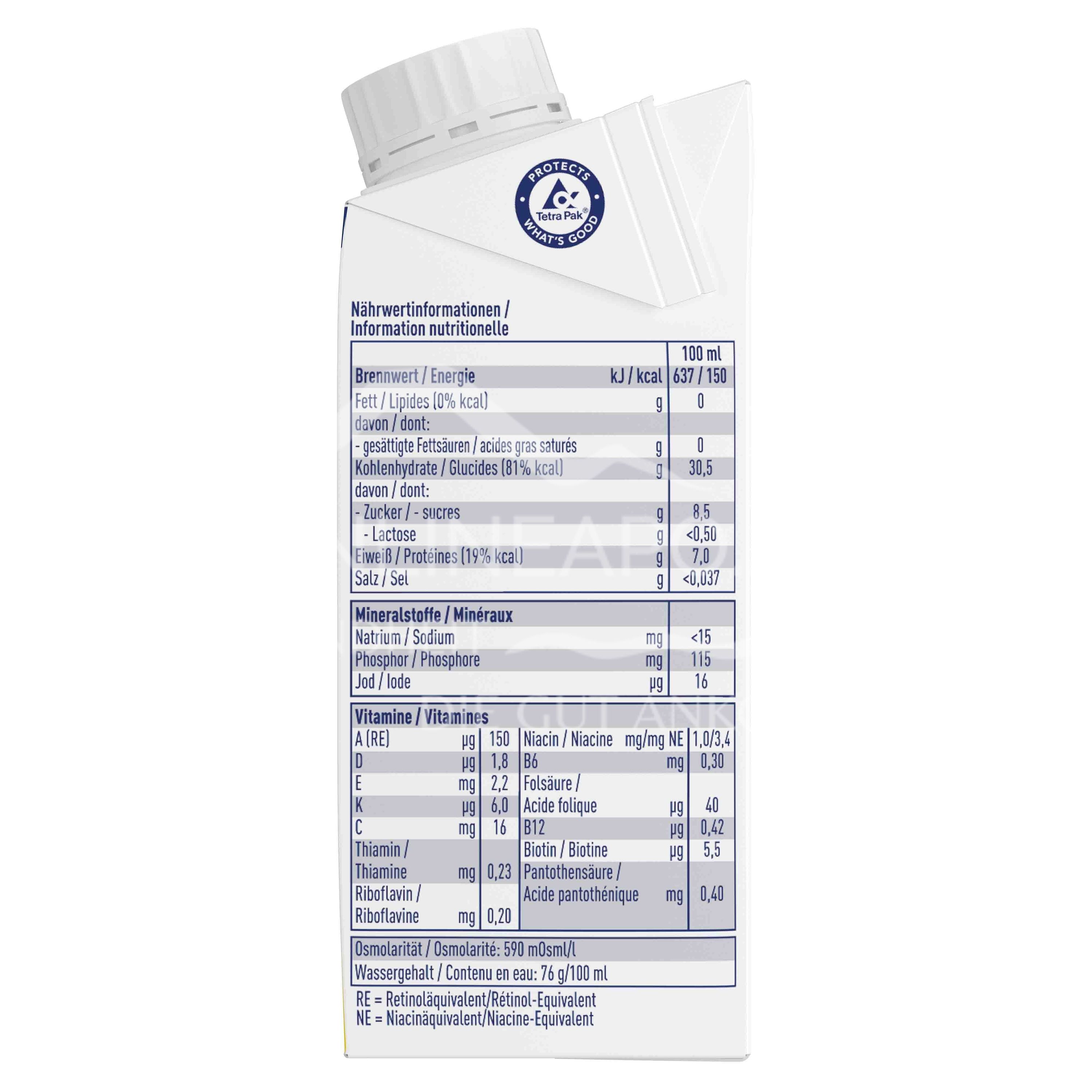 High-protein, high-calorie drinkable food. Food for special medical purposes (balanced diet). For diet management in case of existing malnutrition or risk of malnutrition.