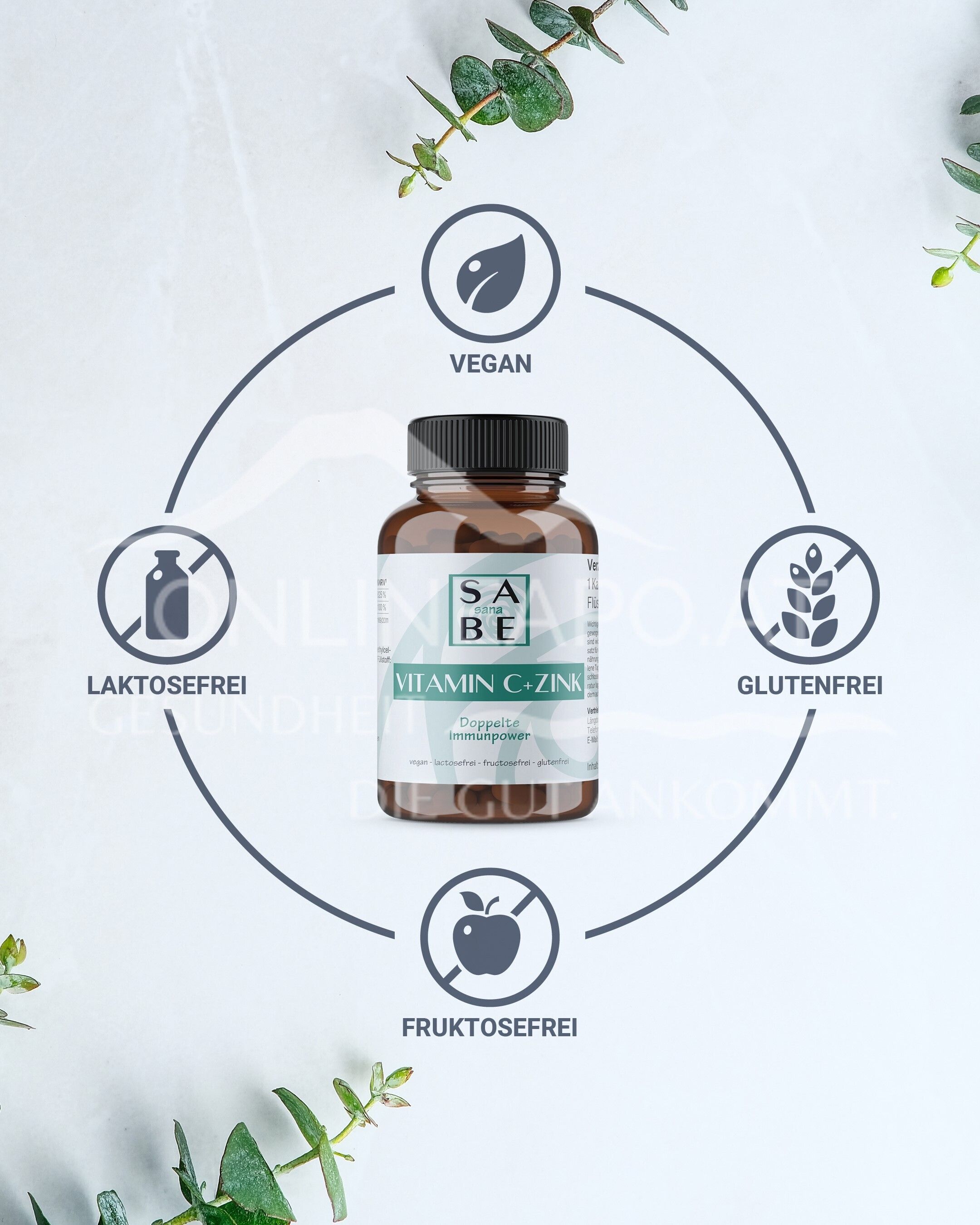 SABE sana Vitamin C + Zink Kapseln sind ein Nahrungsergänzungsmittel zur Unterstützung für starke Abwehrkräfte. Unser Nährstoff-Duo aus gepuffertem Vitamin C ist besonders magenfreundlich, kombiniert mit hochwertigem Zinkgluconat.